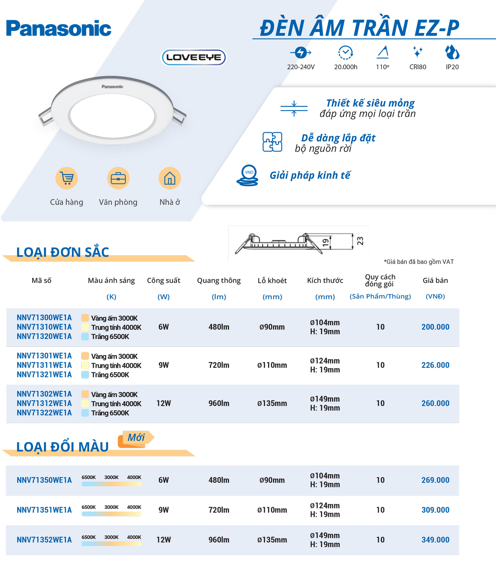 Đèn Downlight âm trần Panasonic đổi màu EZ-P