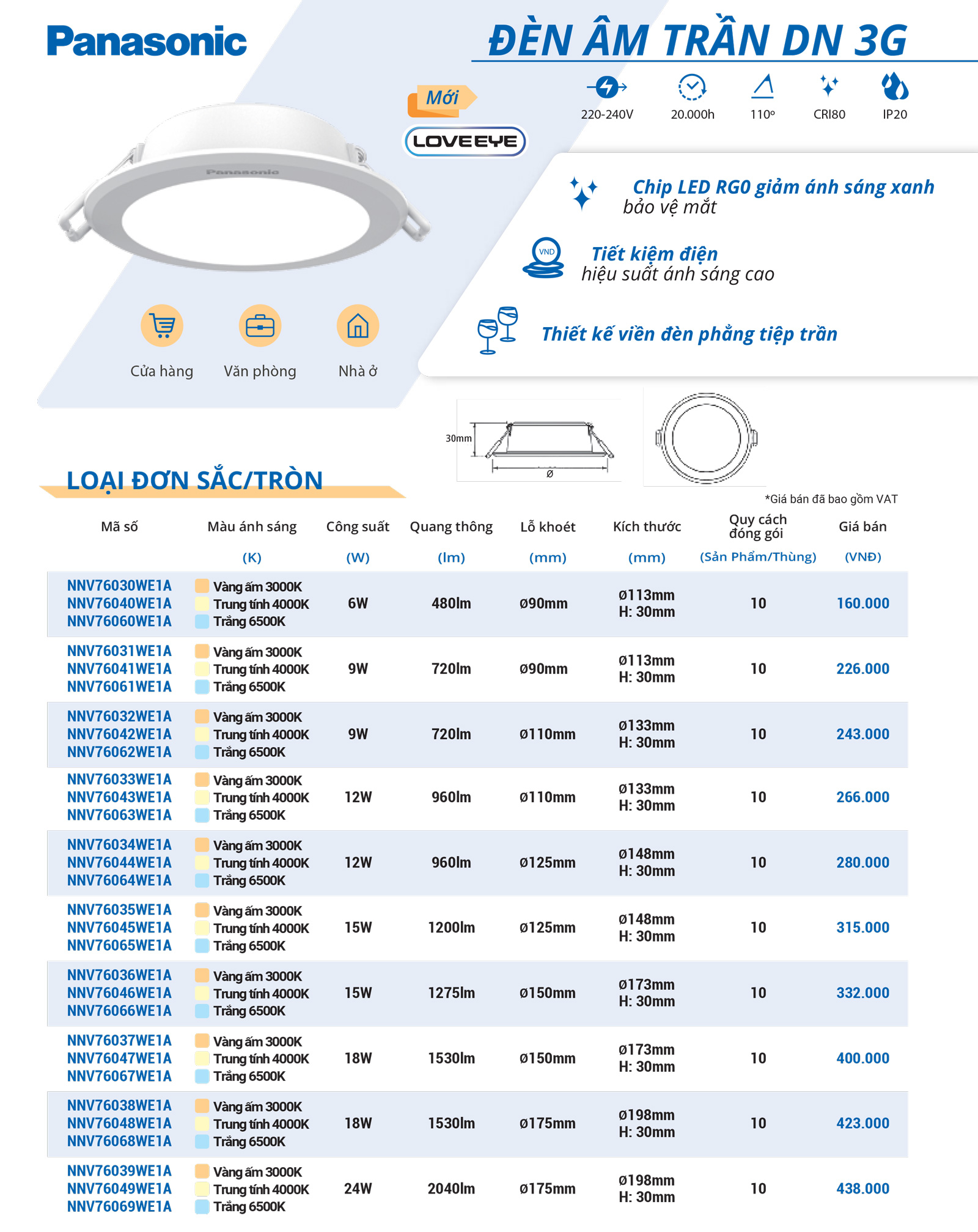 Ánh sáng trung tính | NNV76040WE1A | 160.000 |