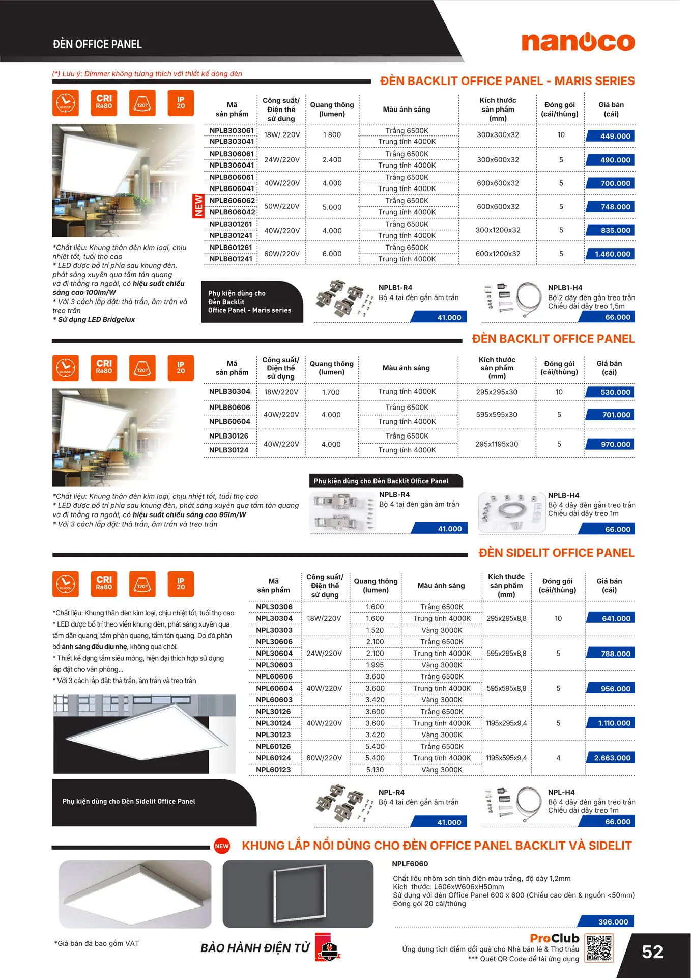 Khung lắp nổi cho đèn Panel tấm Nanoco NPLF6060 L606xW606xH50mm