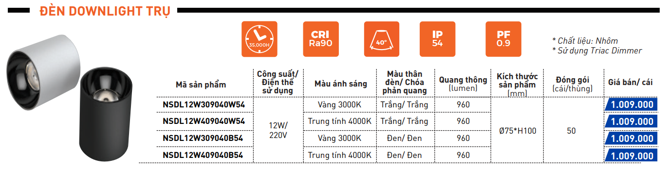 Ánh sáng trung tính | NSDL104W | 410.000 | 35% | 266.500 |