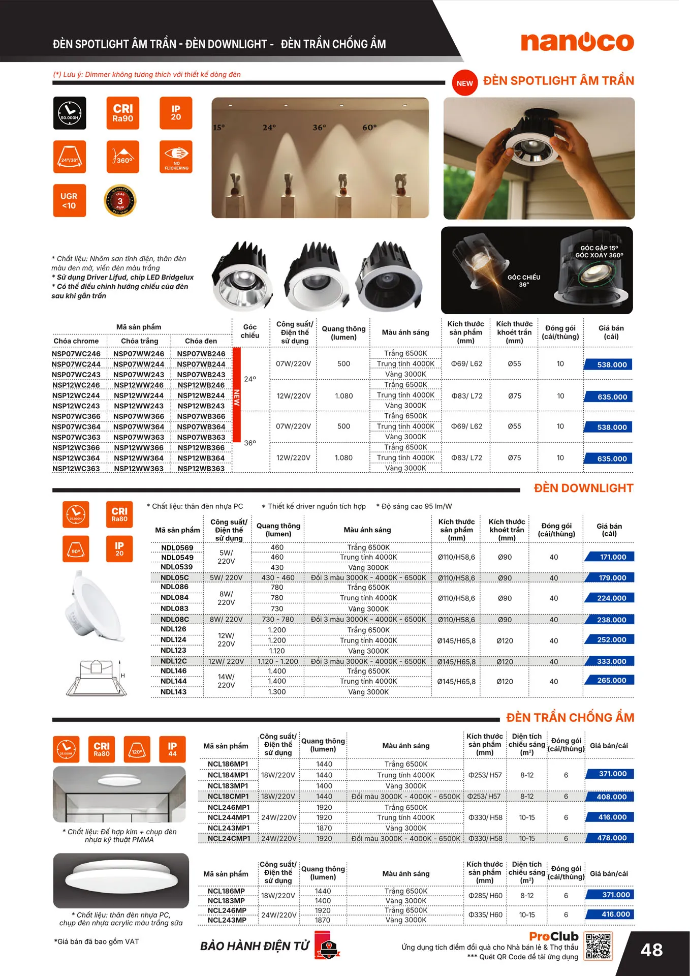 Đèn Spotlight âm trần Nanoco 12W (Chóa chrome) góc chiếu 36°