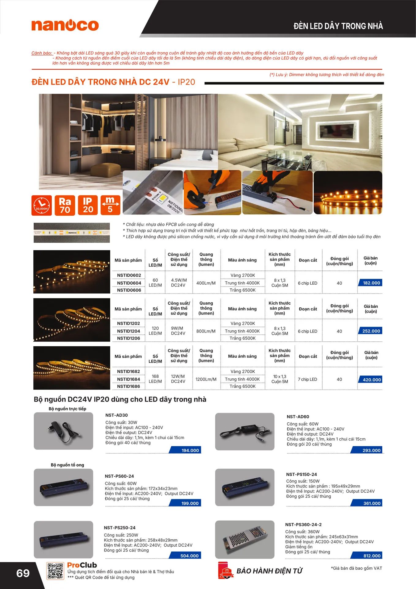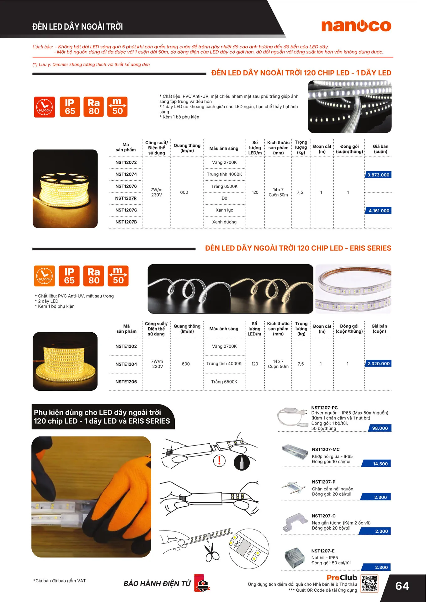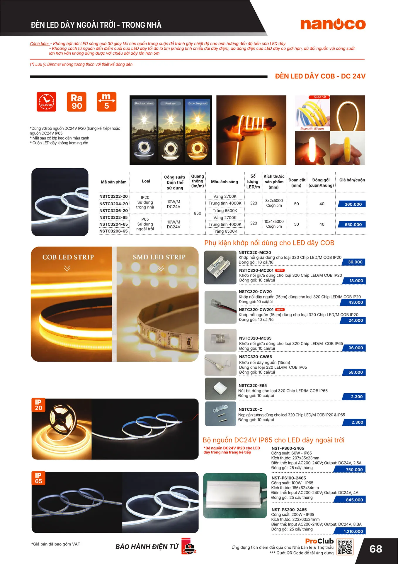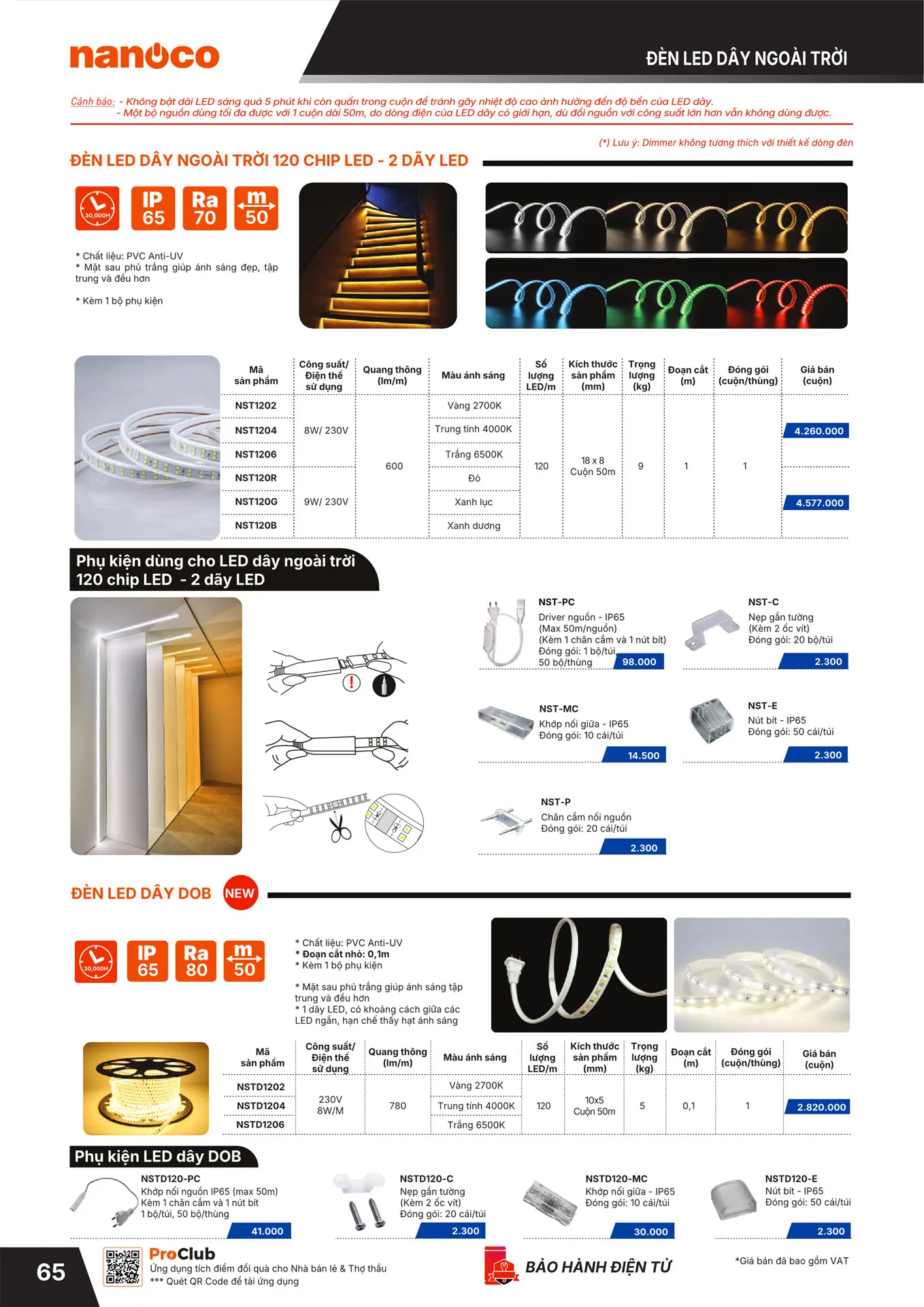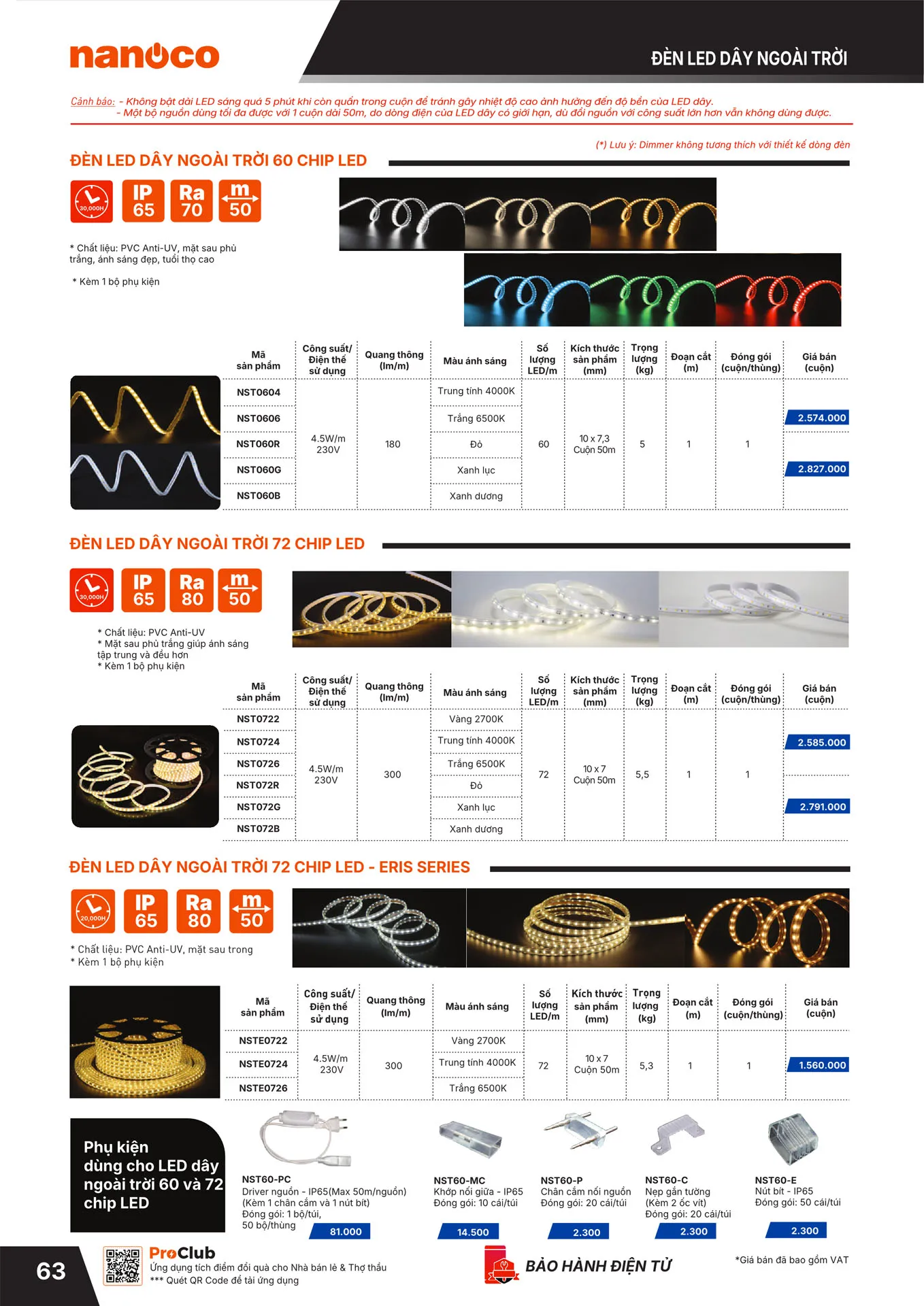 Đèn Led dây ngoài trời DOB Nanoco IP65 công suất 8W/m 780lm/m