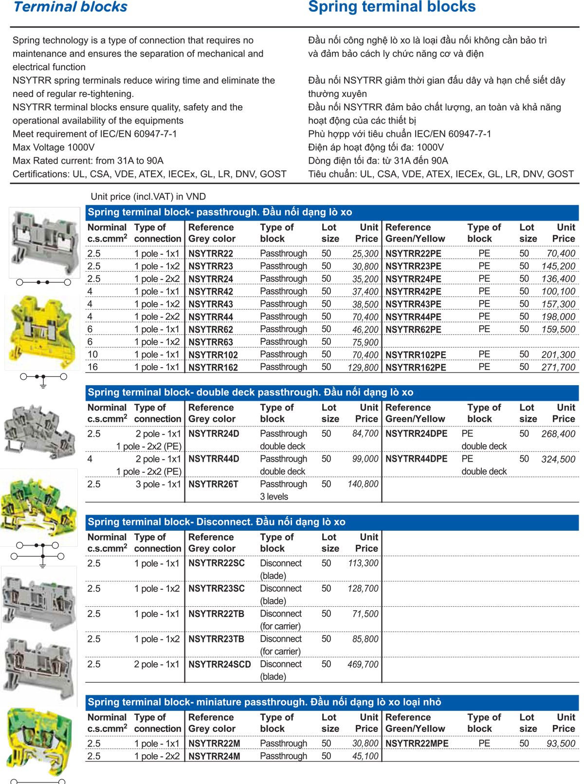 - Đầu nối công nghệ lò xo là loại đầu nối không cần bảo trì và đảm bảo cách ly chức năng cơ và điện