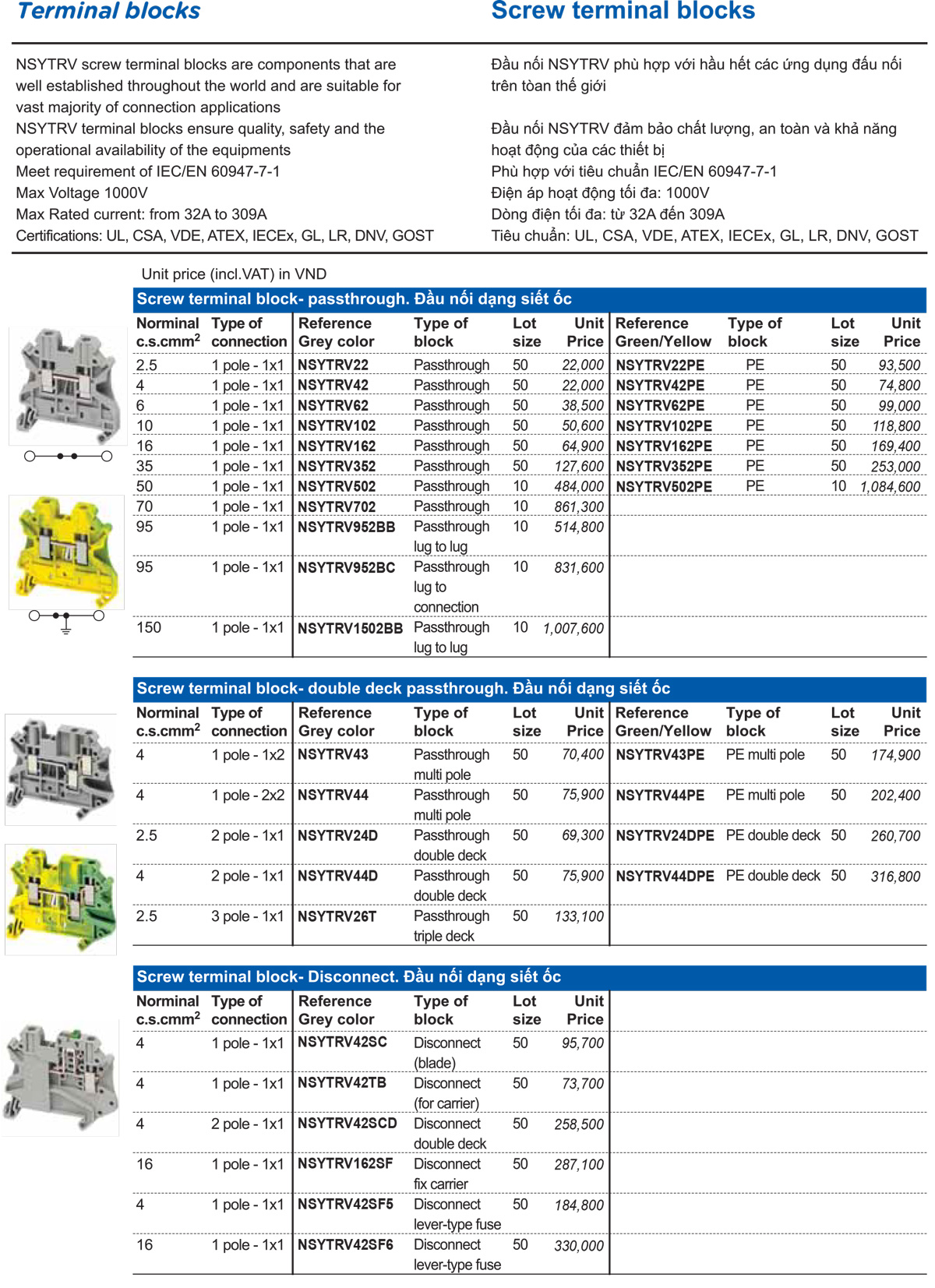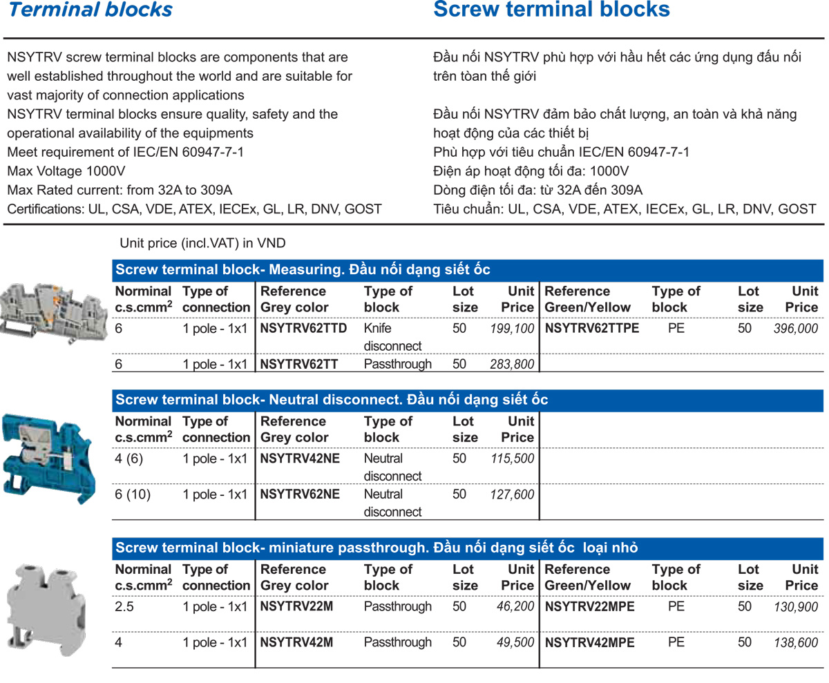 - Đầu nối NSYTRV phù hợp với hầu hết các ứng dụng đấu nối trên tòan thế giới