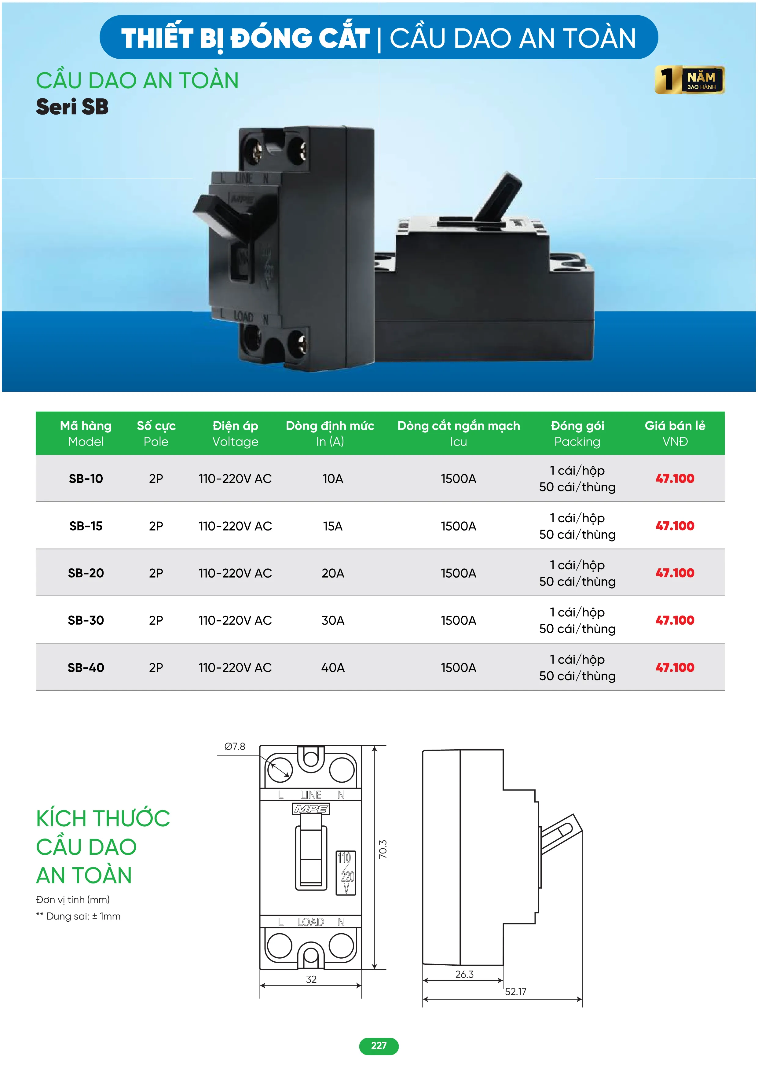 Tiết diện định mức dây cáp: 1-2.5 mm²