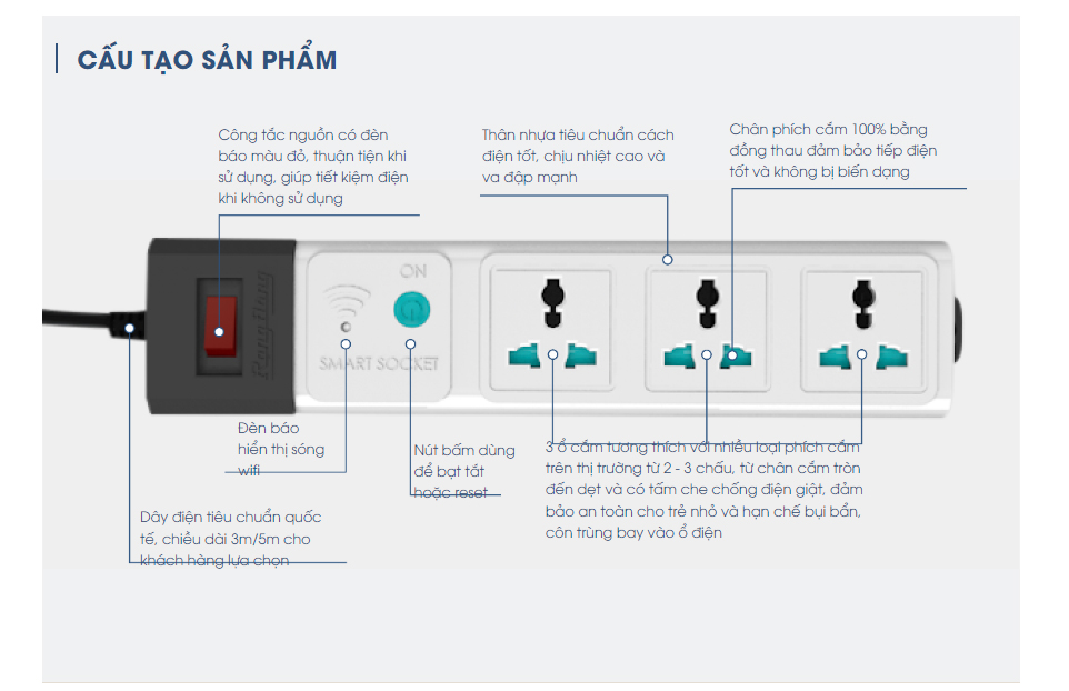 | Dải điện áp hoạt động: | (150-250)V/50Hz |