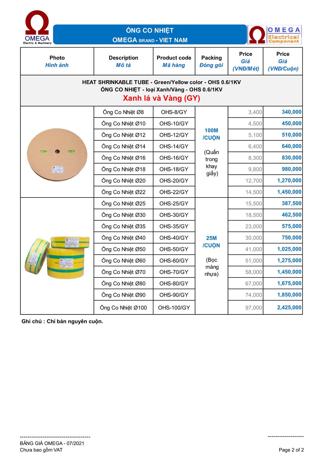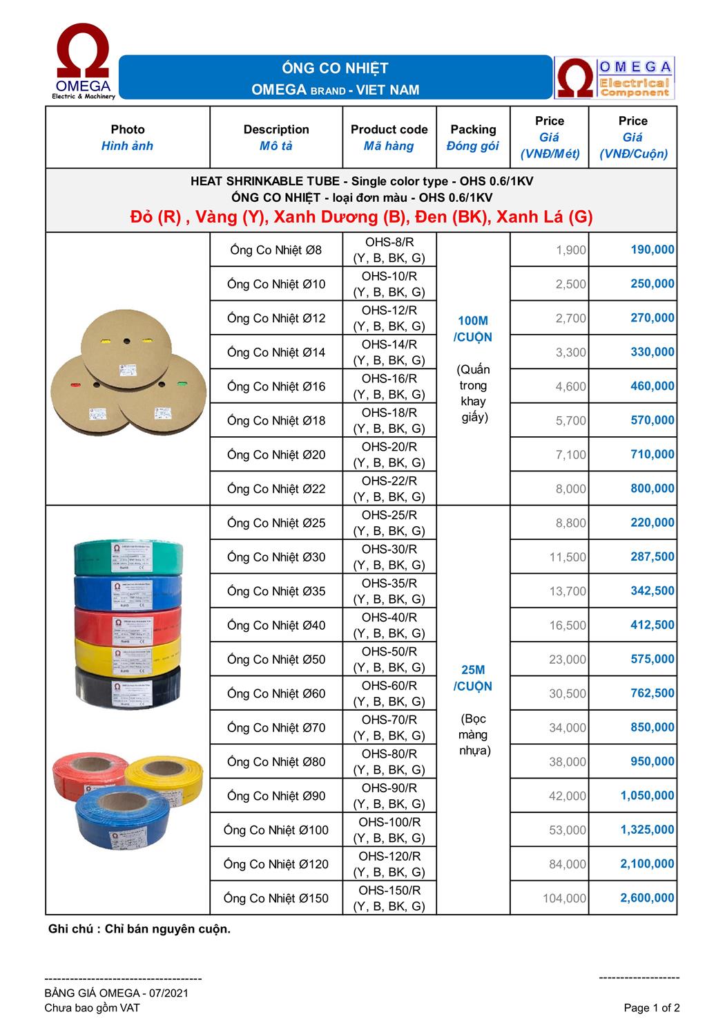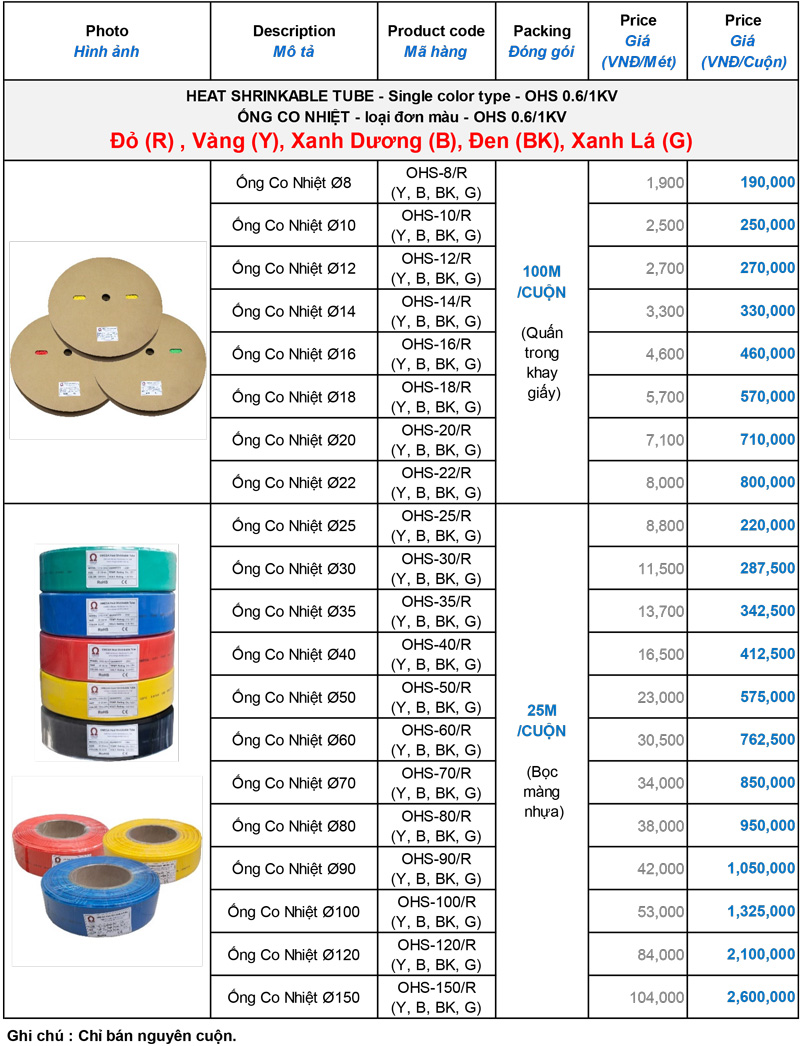 Ống Co Nhiệt Ø25 | OHS-25/R (Y, B, BK, G) | 8.800 |