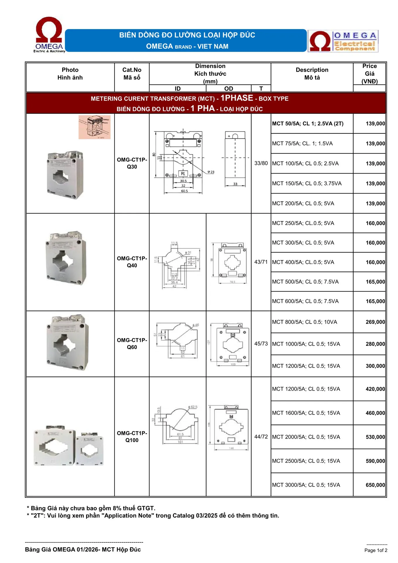 MCT 100/5A; CL 0.5; 2.5VA | OMG-CT1P Q30 | 139.000 |
