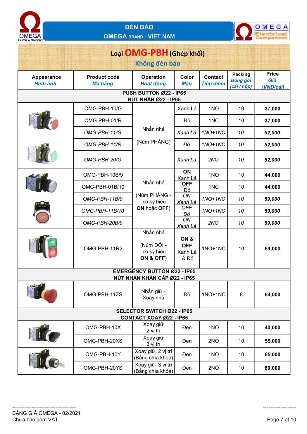 ON / Xanh lá (1NO+1NC) | OMG-PBH-11B/9 | 59.000 |