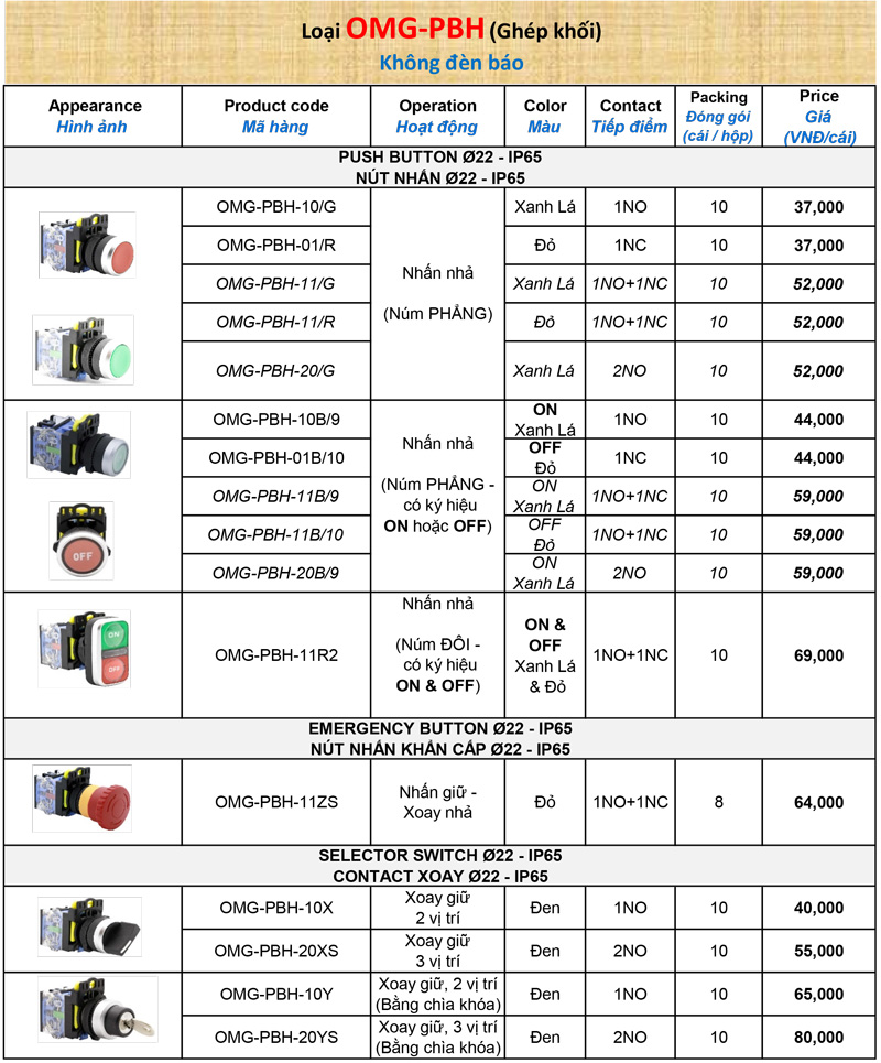 OFF / Đỏ (1NO+1NC) | OMG-PBH-11B/10 | 59.000 |