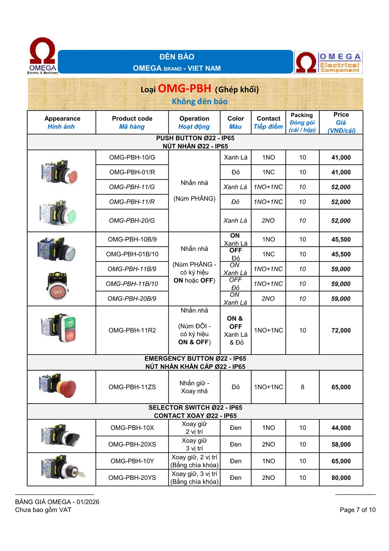 1NO / Xoay giữ 2 vị trí | OMG-PBH-10X | 44.000 |