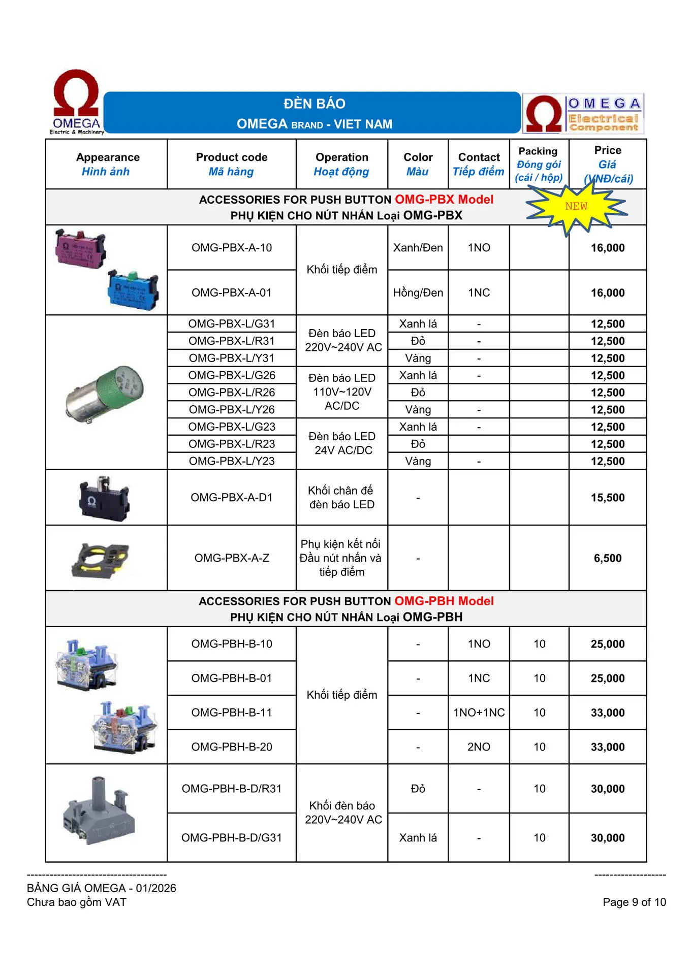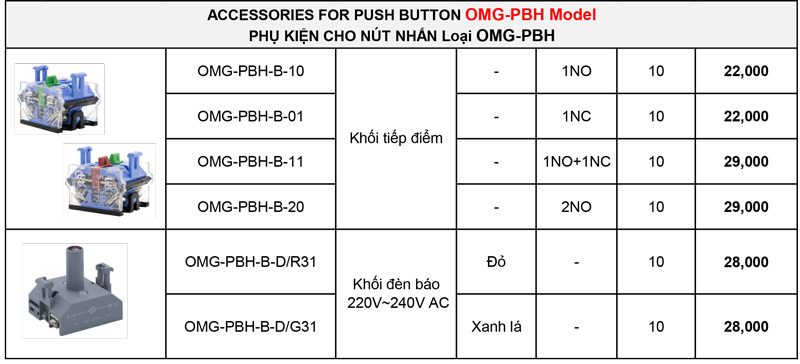 Khối đèn báo 220~240V AC: phụ kiện cho nút nhấn loại OMG-PBH