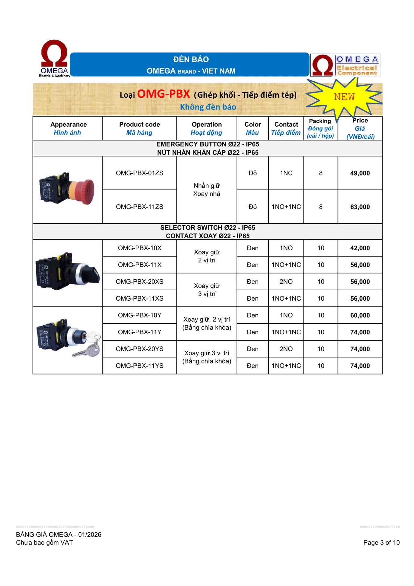 Đen/1NO+1NC/Xoay giữ 3 vị trí | OMG-PBX-11YS | 74.000 |