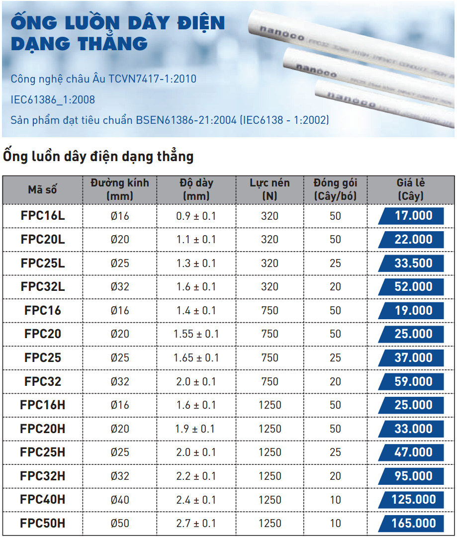 FPC16L - Ống luồn dây điện Nanoco dạng thẳng PVC dài 2,92m