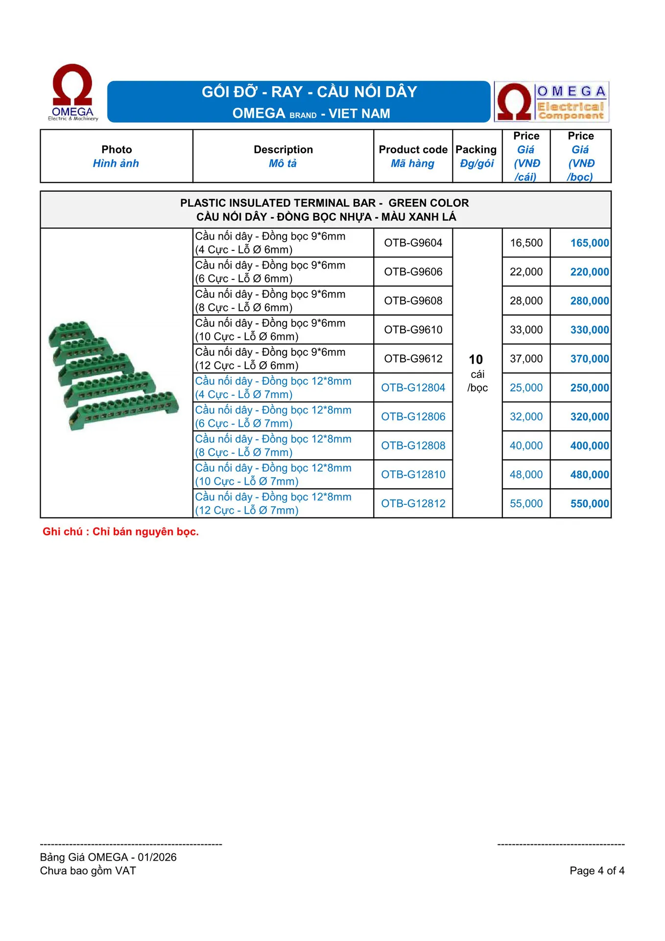 Cầu nối dây - Đồng bọc 9*6mm (4 Cực - Lỗ Ø 6mm) | OTB-G9604 | 16.500 |
