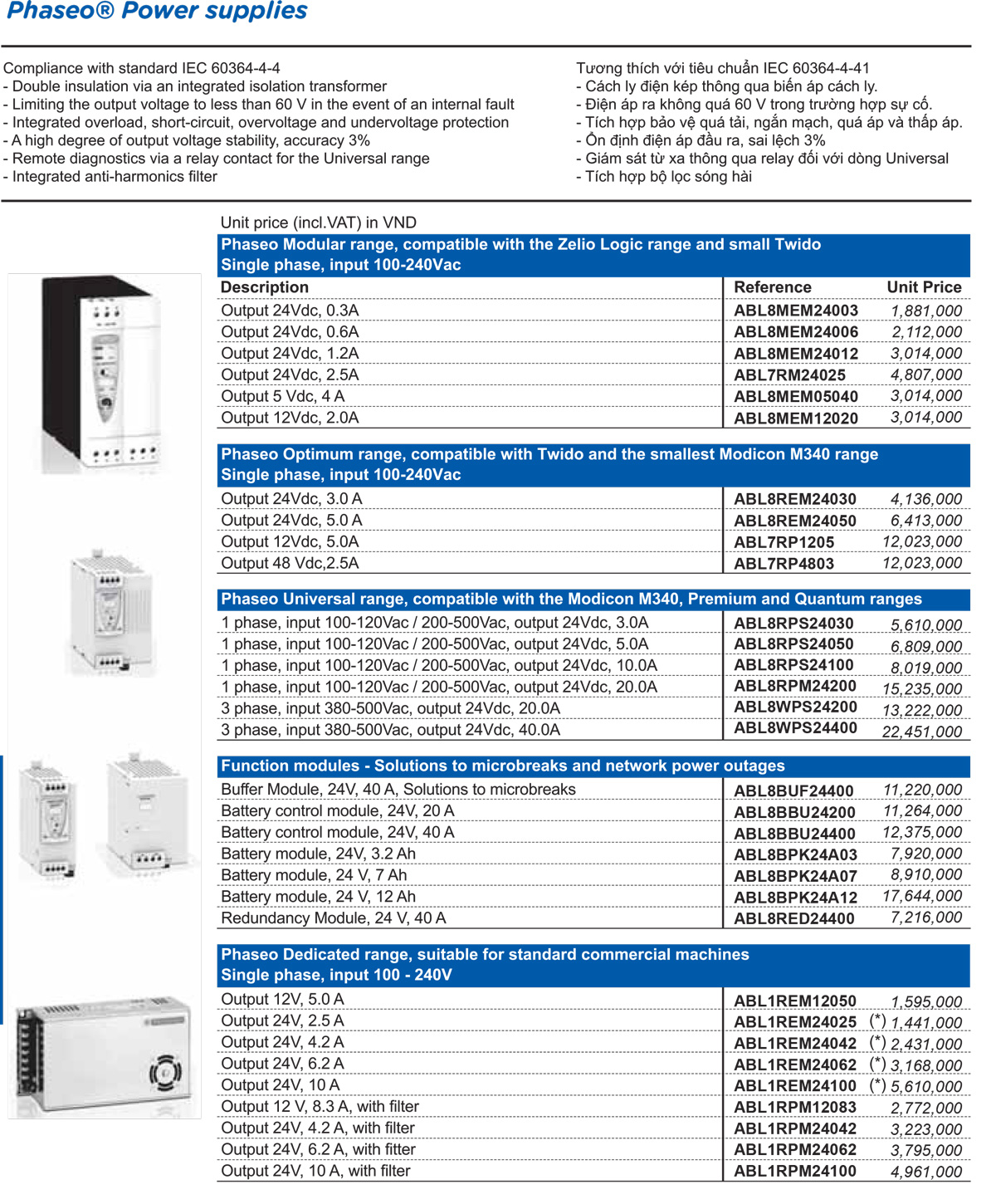 Phaseo Dedicated range, suitable for