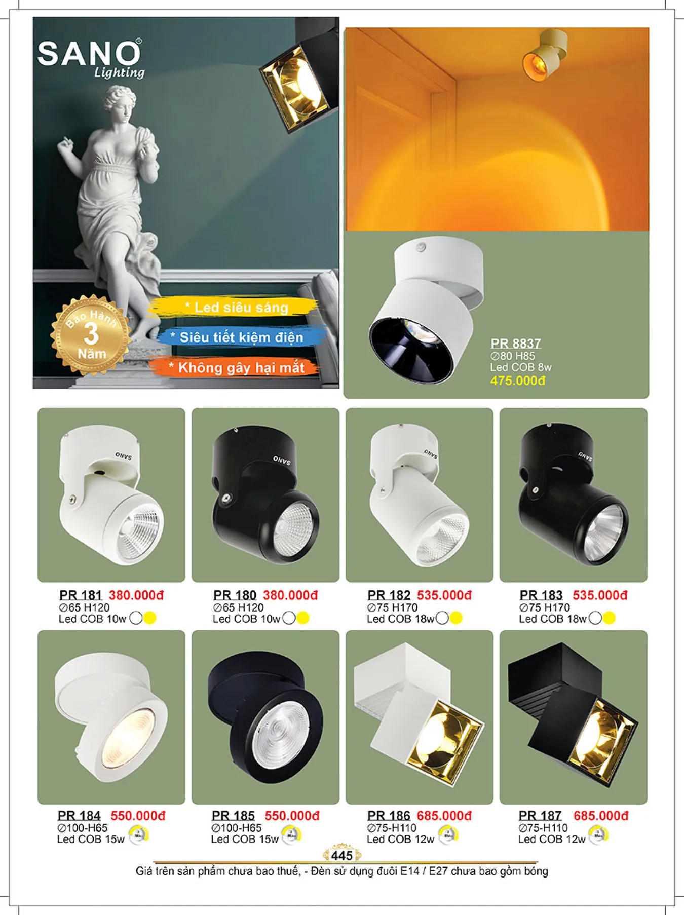 Đèn ống bơ gập Sano PR 8837 Led COB 8W Ø80*H85