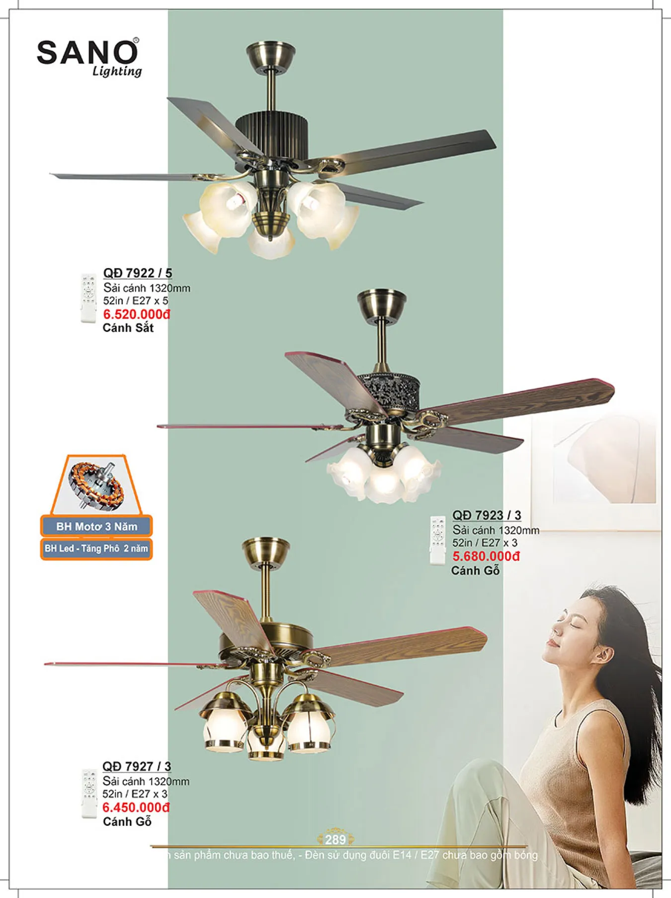 Quạt trần đèn Sano 5 cánh QĐ 7922/5 52 in E27*5