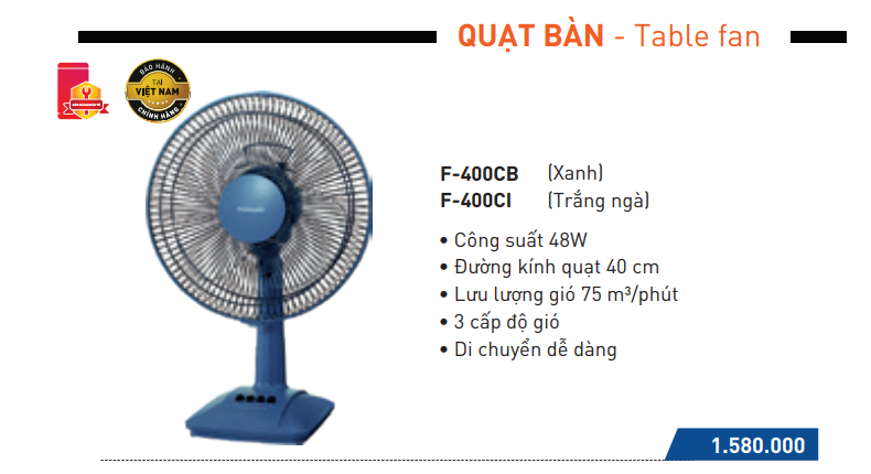 Quạt bàn màu trắng ngà | F-400CI | 1.580.000 | 32% | 1.074.400 |