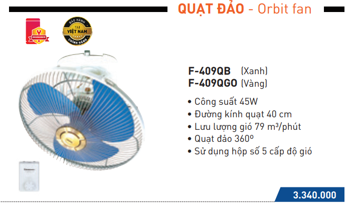 Quạt đảo trần màu xanh | F-409QB | 3.340.000 | 32% | 2.271.200 |