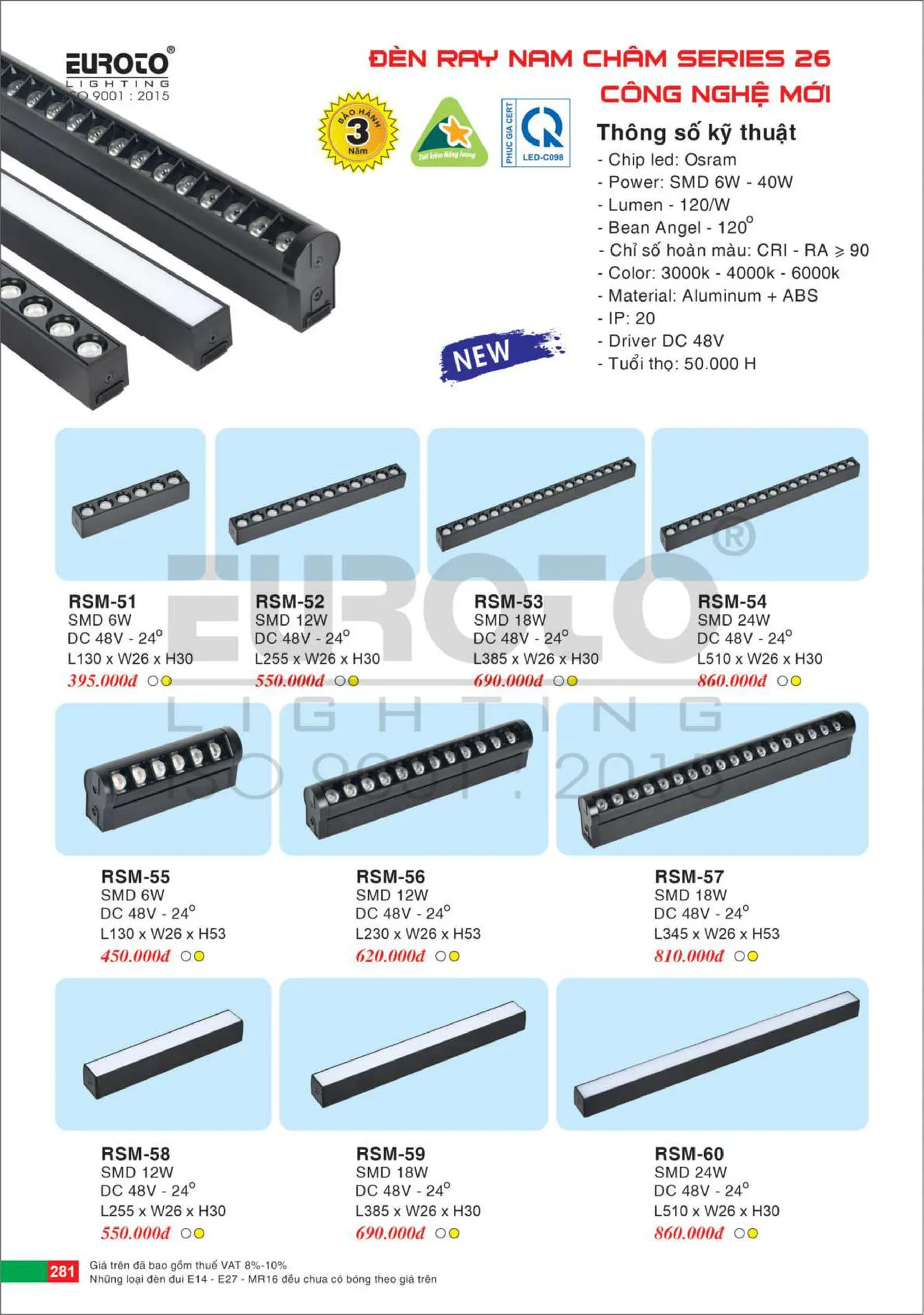 Đen ray nam châm Euroto RSM-51 L130*W26*H30