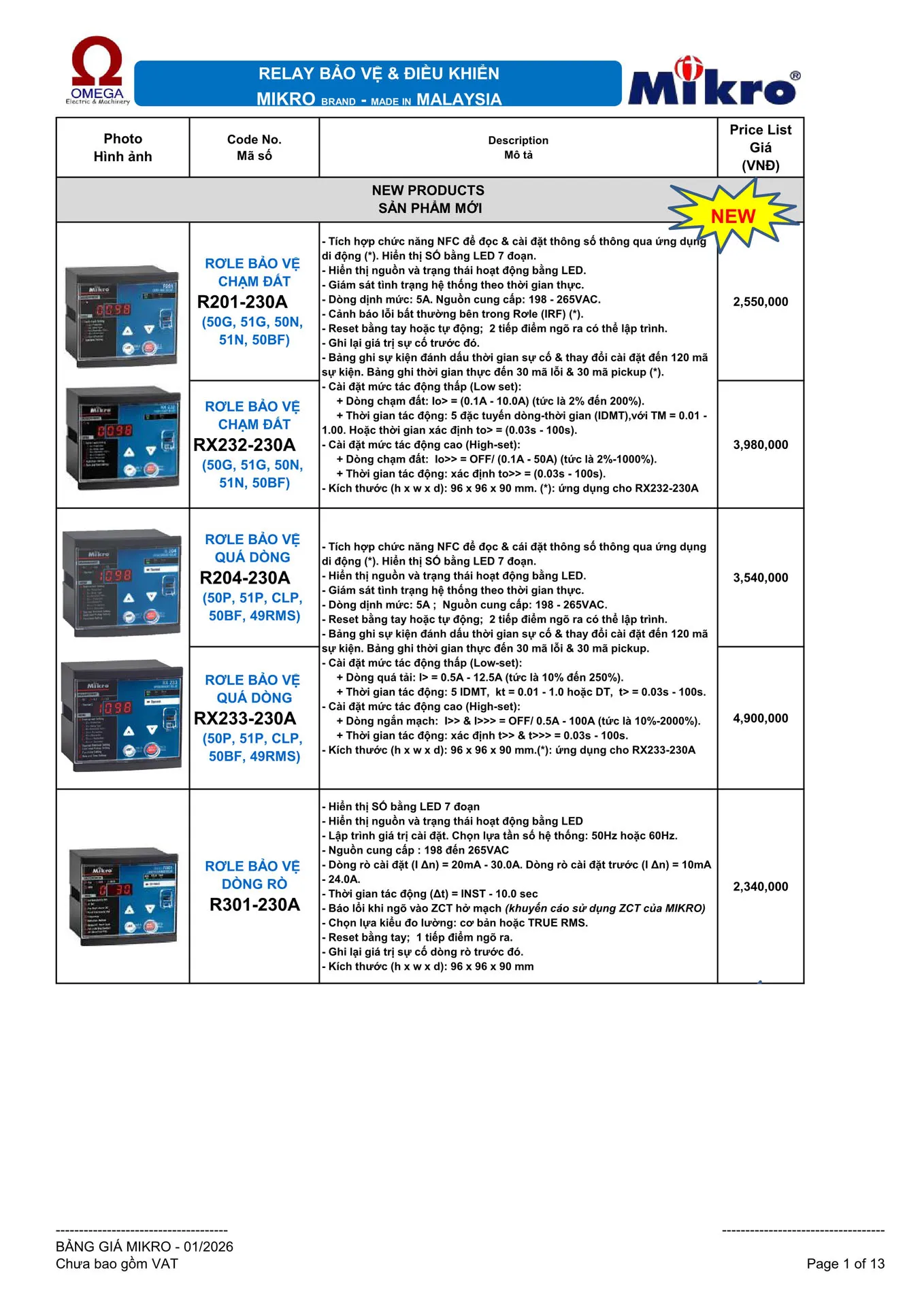 Rơle bảo vệ quá dòng Mikro RX233-230A (50P, 51P, CLP, 50BF, 49RMS)