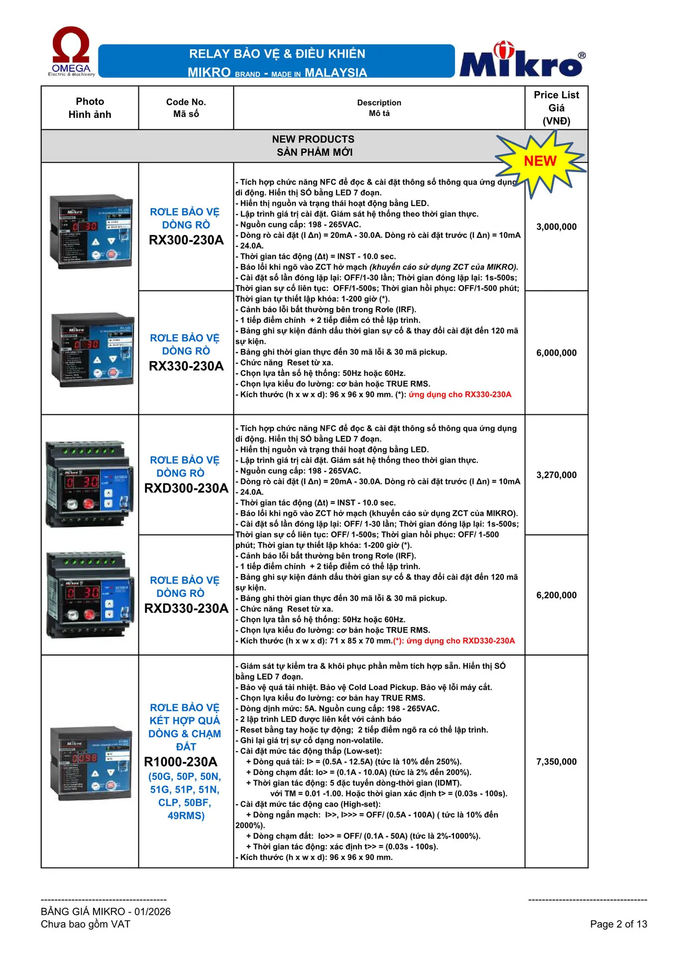 - Kích thước (h x w x d): 96 x 96 x 90 mm. (*): ứng dụng cho RX330-230A