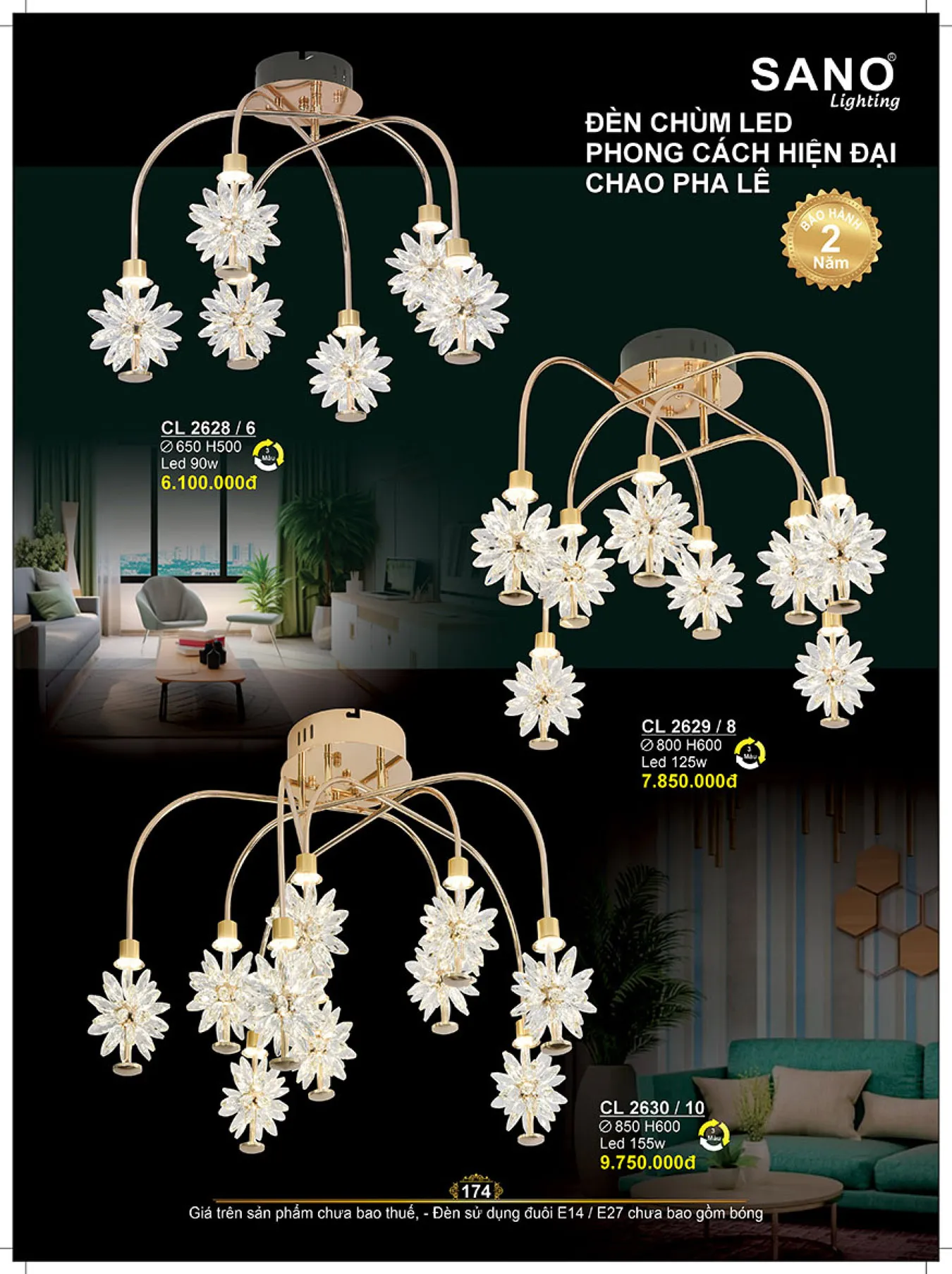 Đèn chùm led 90W Sano Ø650*H500 - 3 màu