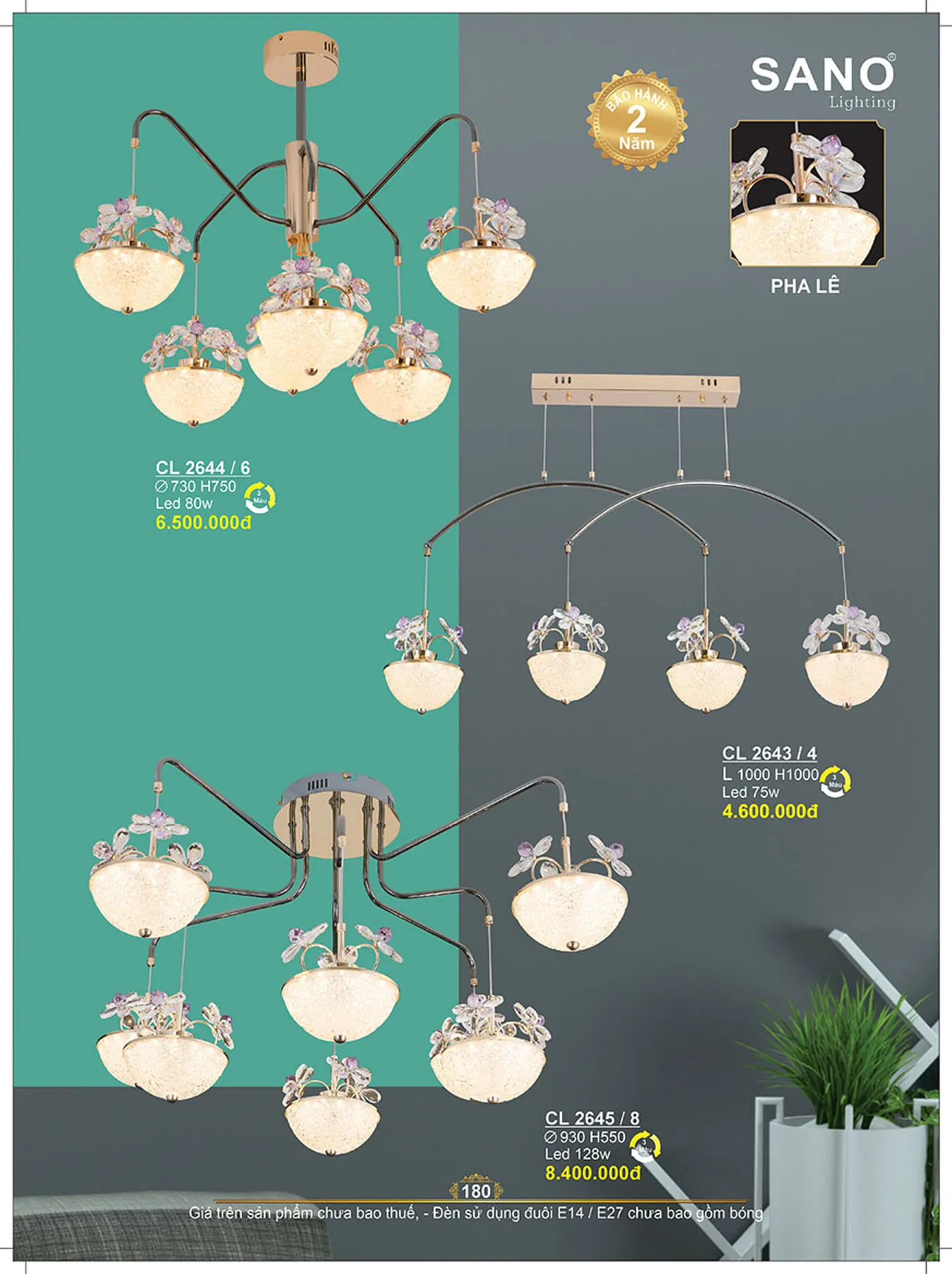Đèn chùm led 128W Sano Ø930*H550 - 3 màu