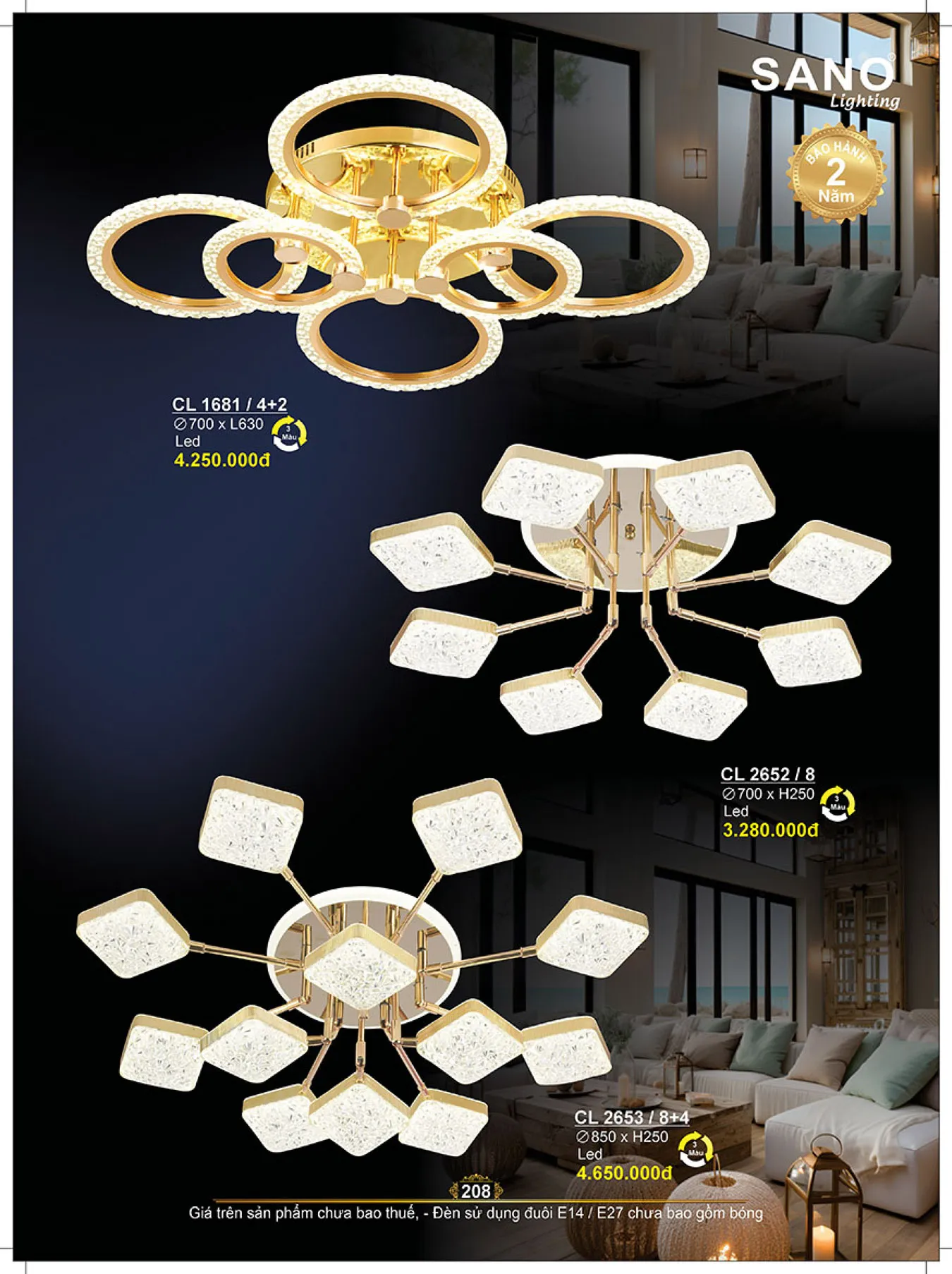 Đèn chùm LED Sano CL-2653/8+4 Ø850*H250 215W