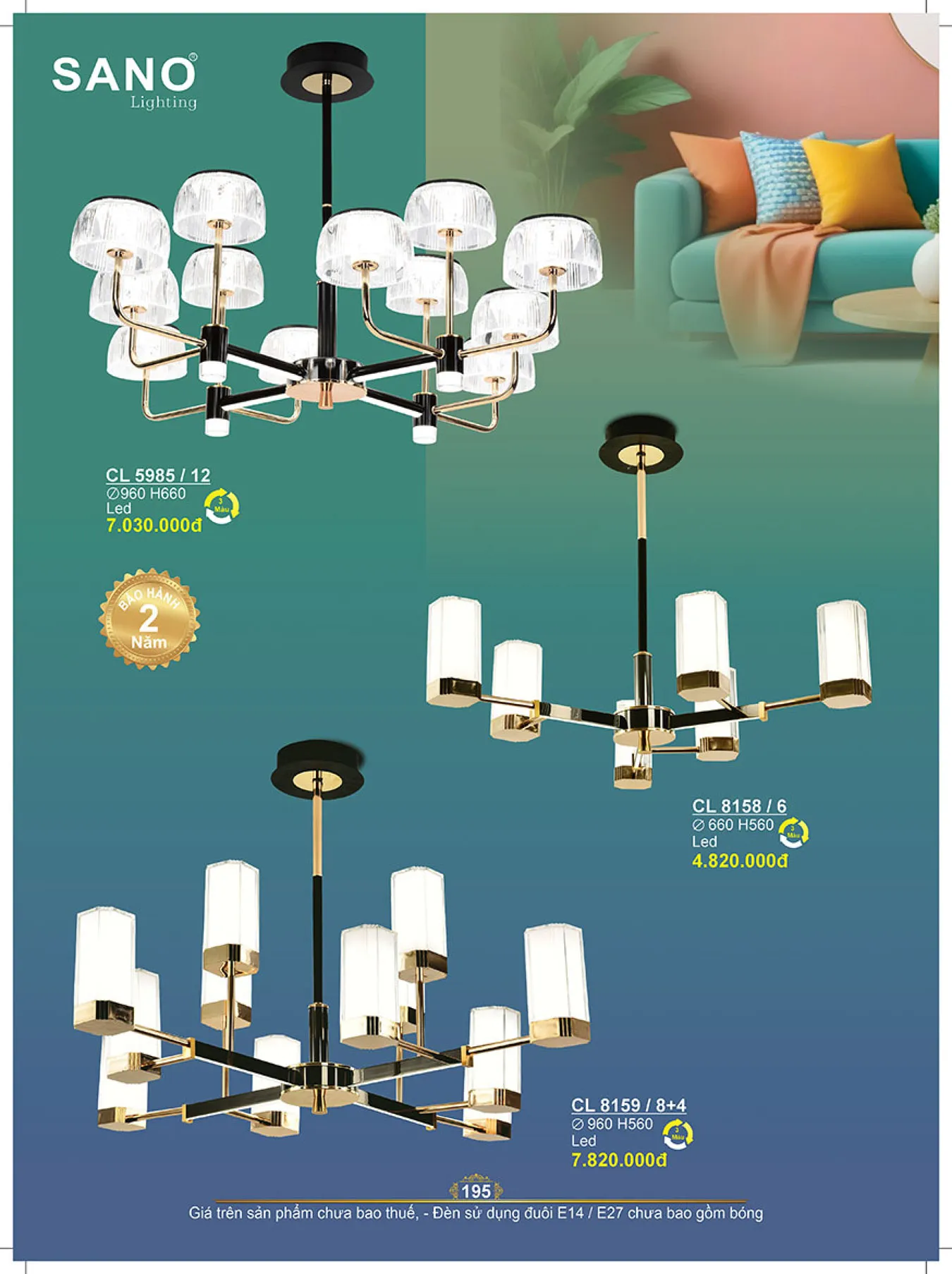 Đèn chùm Sano Led 120W - Ø660*H560 - 3 màu ánh sáng