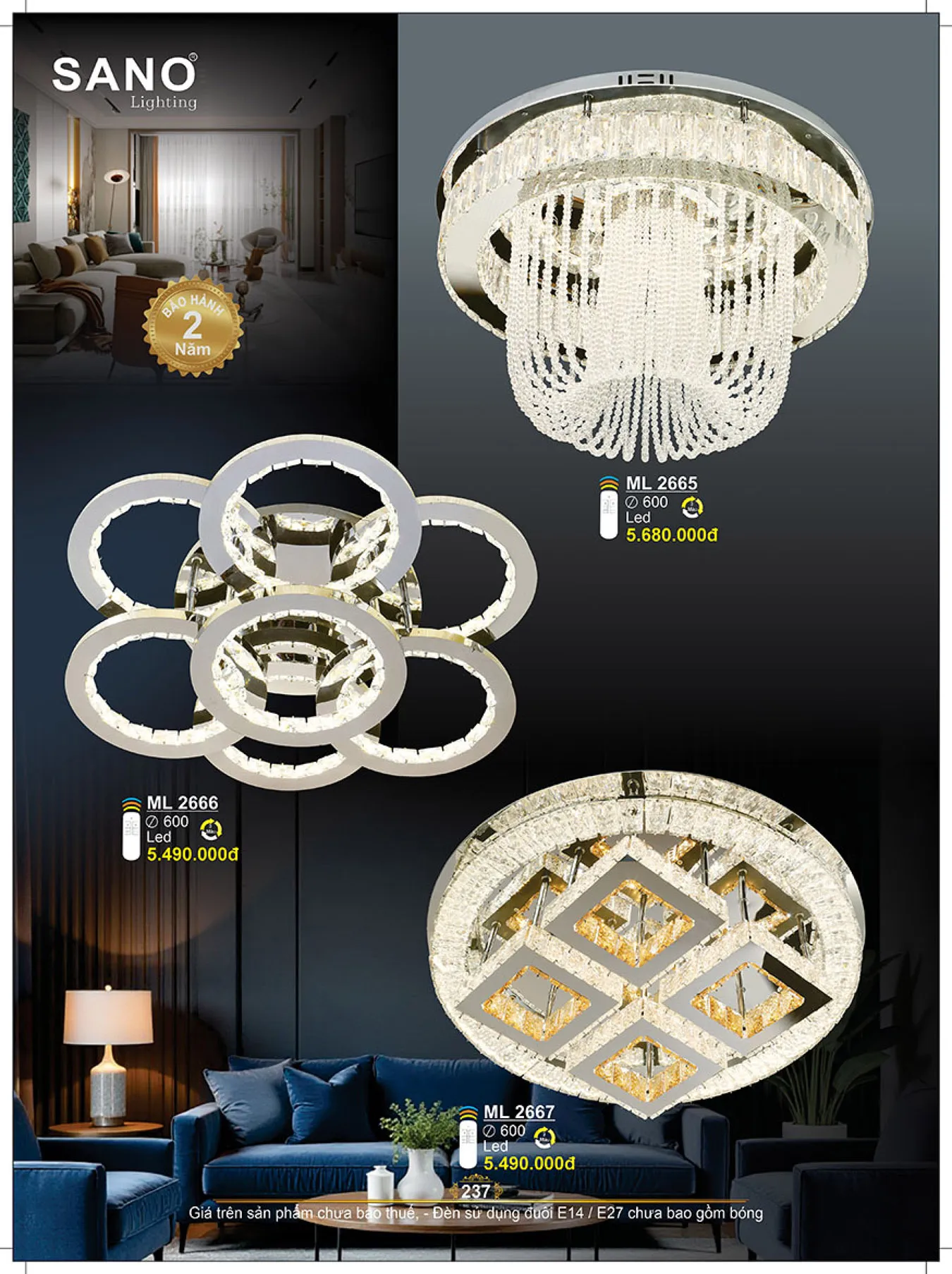 Đèn mâm pha lê Sano ML 2665 Ø600 225W