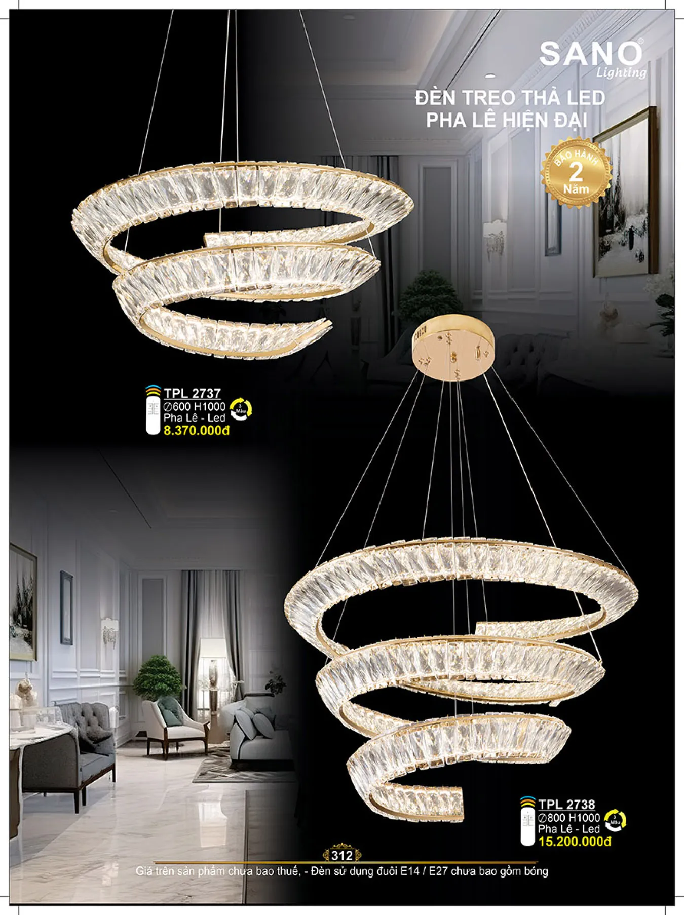 Đèn treo pha lê SANO TPL 2738 Ø800*H1000