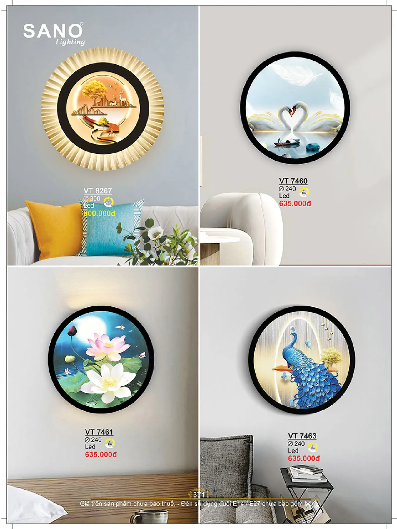 Đèn vách trang trí Sano VT 8267 Ø300 Led 3 màu