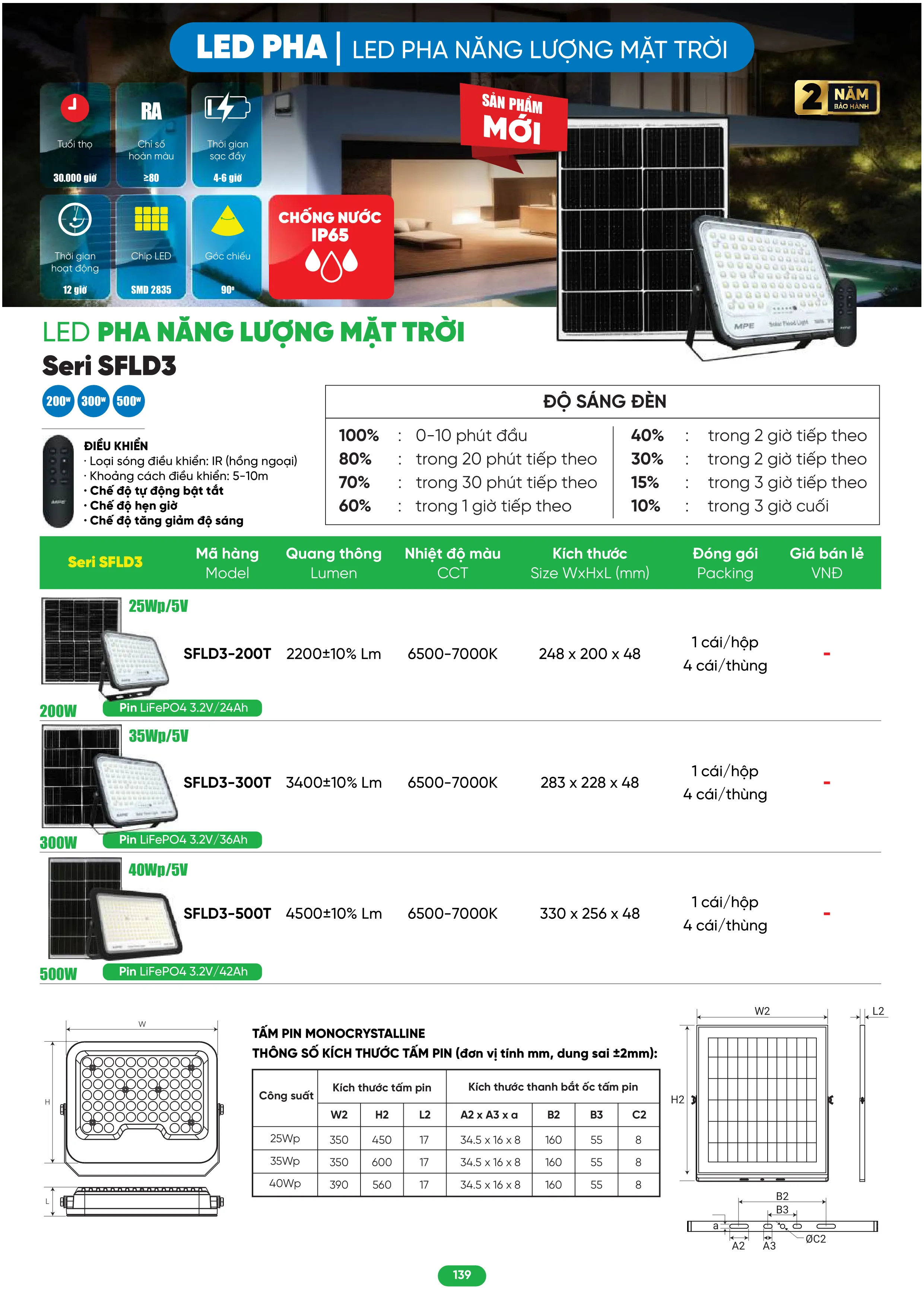 Đèn Led pha năng lượng mặt trời MPE SFLD3-500T 500W