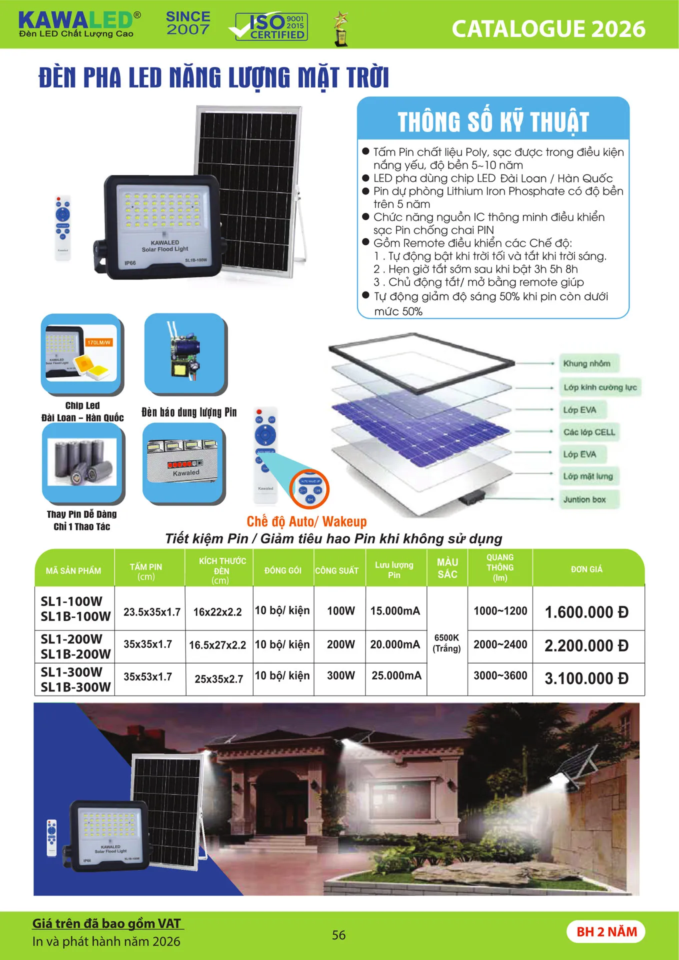 Đèn led pha năng lượng mặt trời Kawaled SL1B 6500K