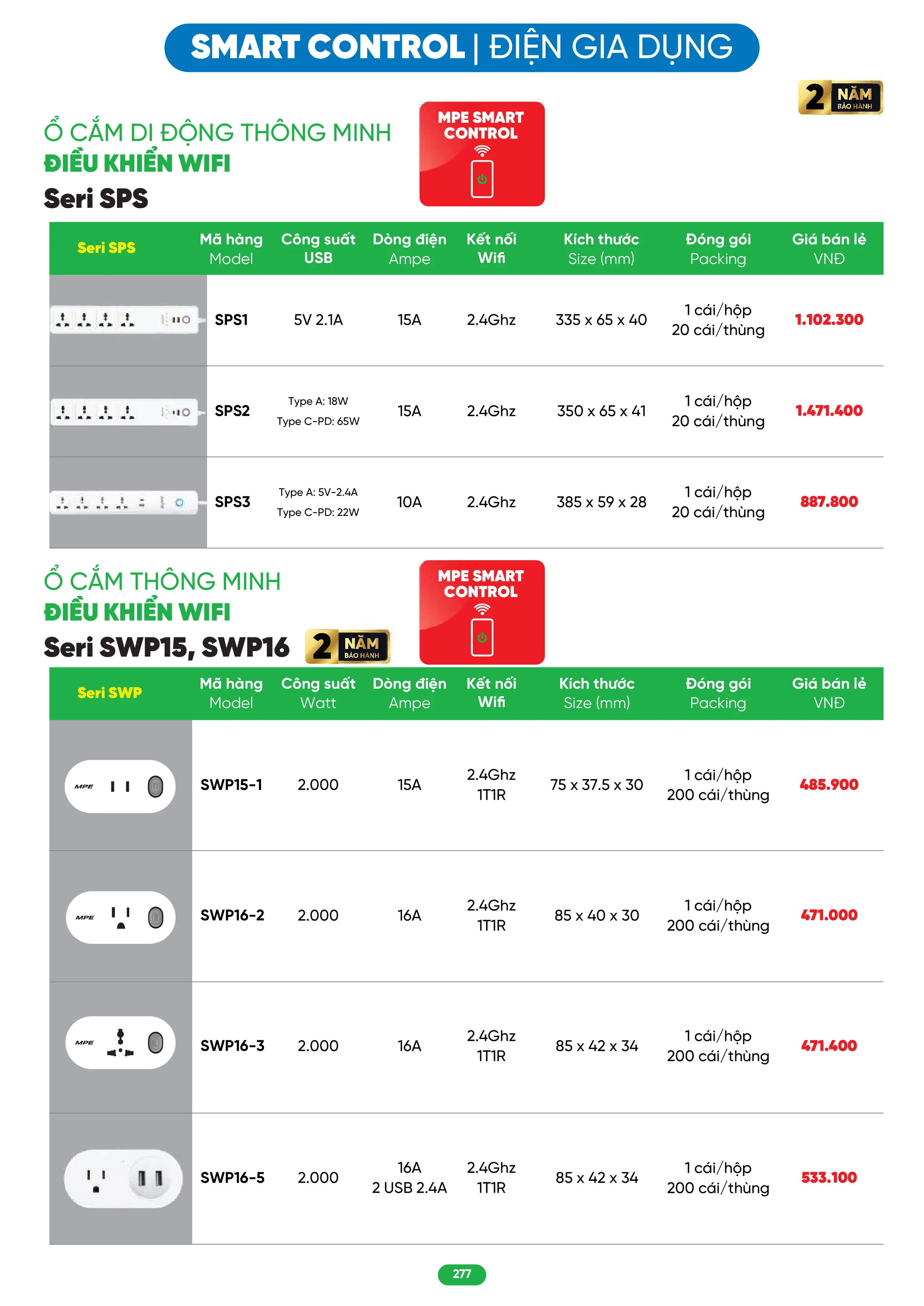 Ổ cắm thông minh MPE SWP15-1 Smart Wifi 15A