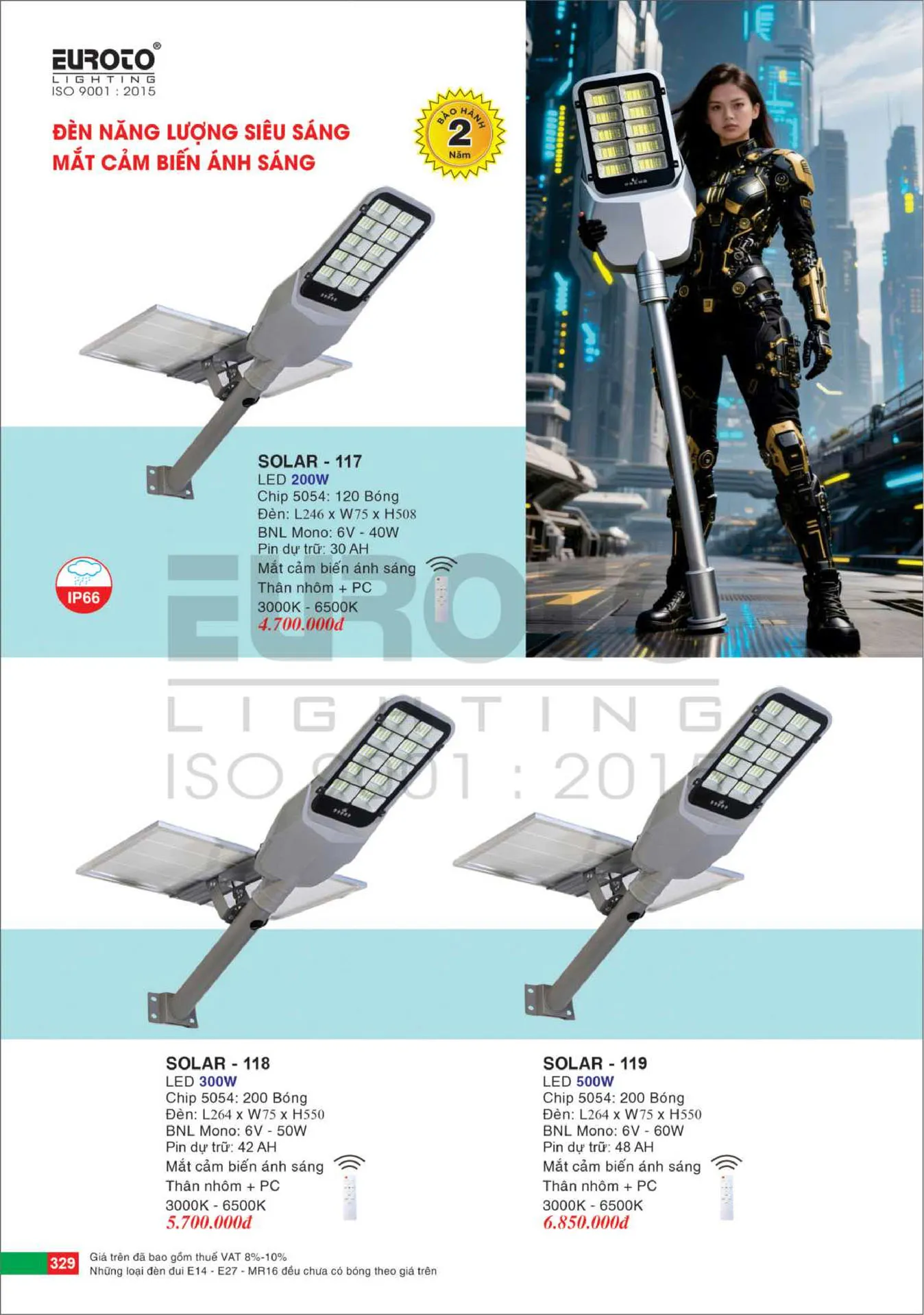 Đèn đường năng lượng mặt trời Euroto cảm biến ánh sáng