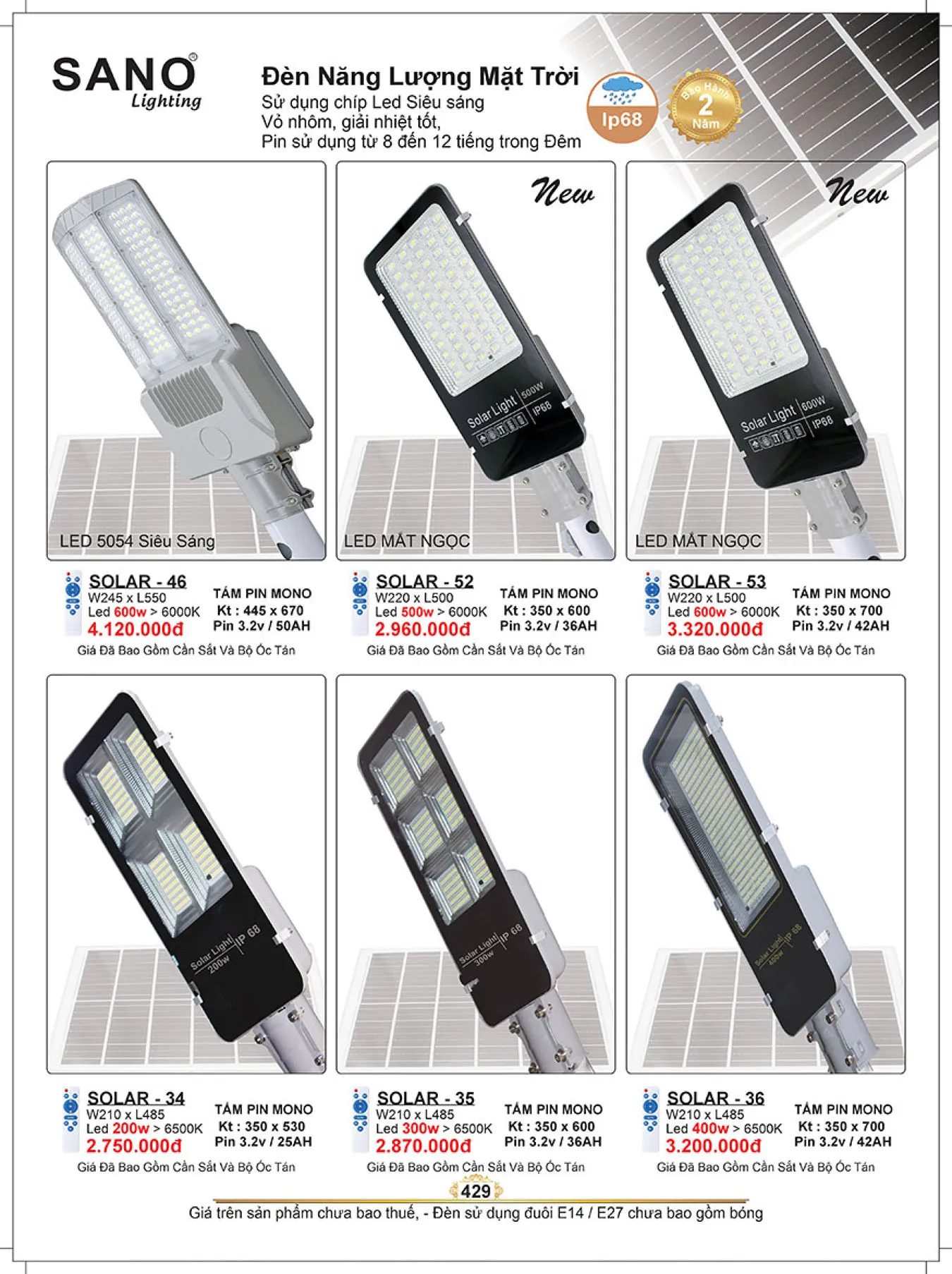 Đèn đường NLMT Sano SOLAR - 52 W220xL500 Led 500W