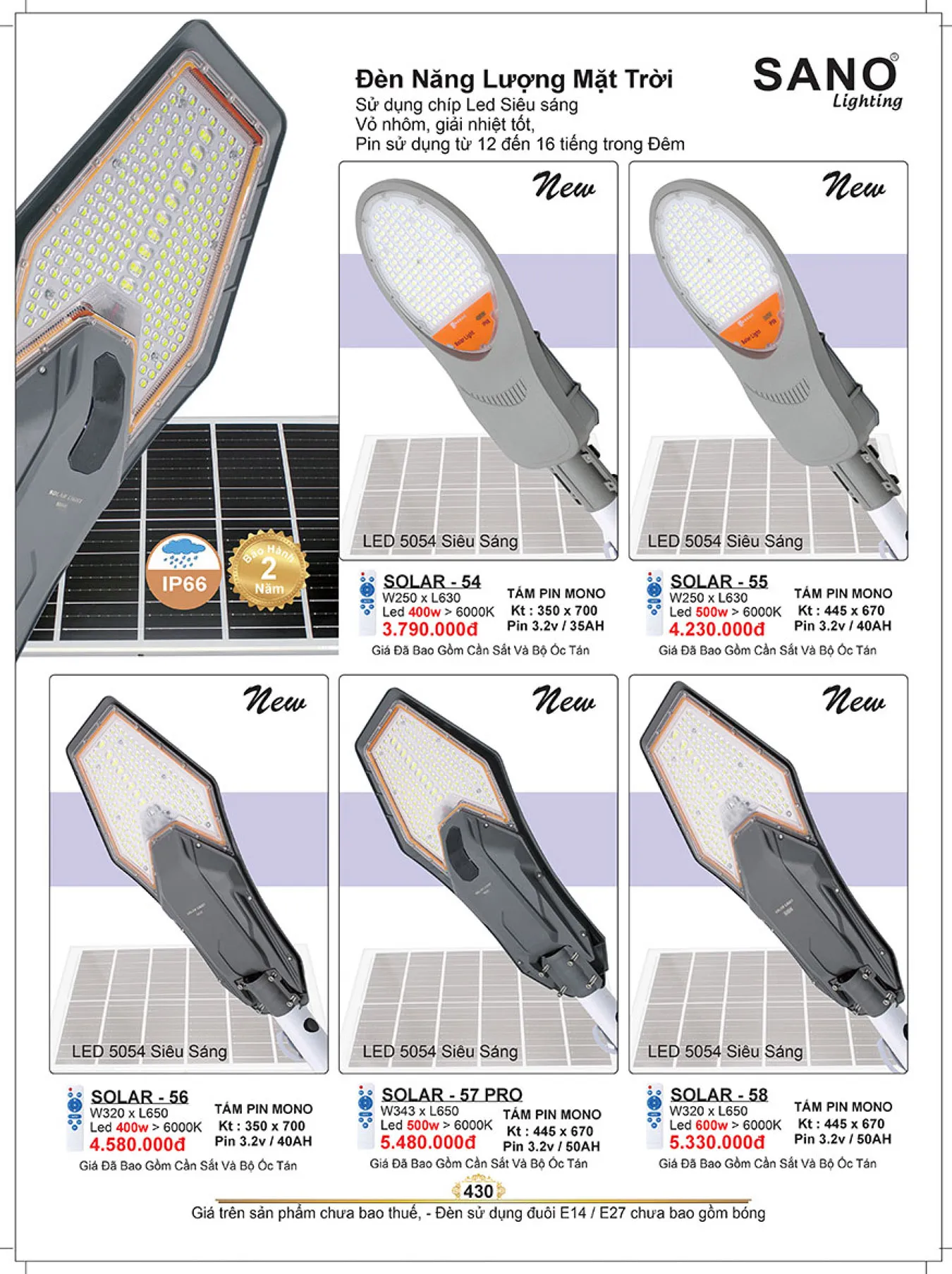 Đèn đường NLMT Sano SOLAR - 54 W250xL630 Led 400W