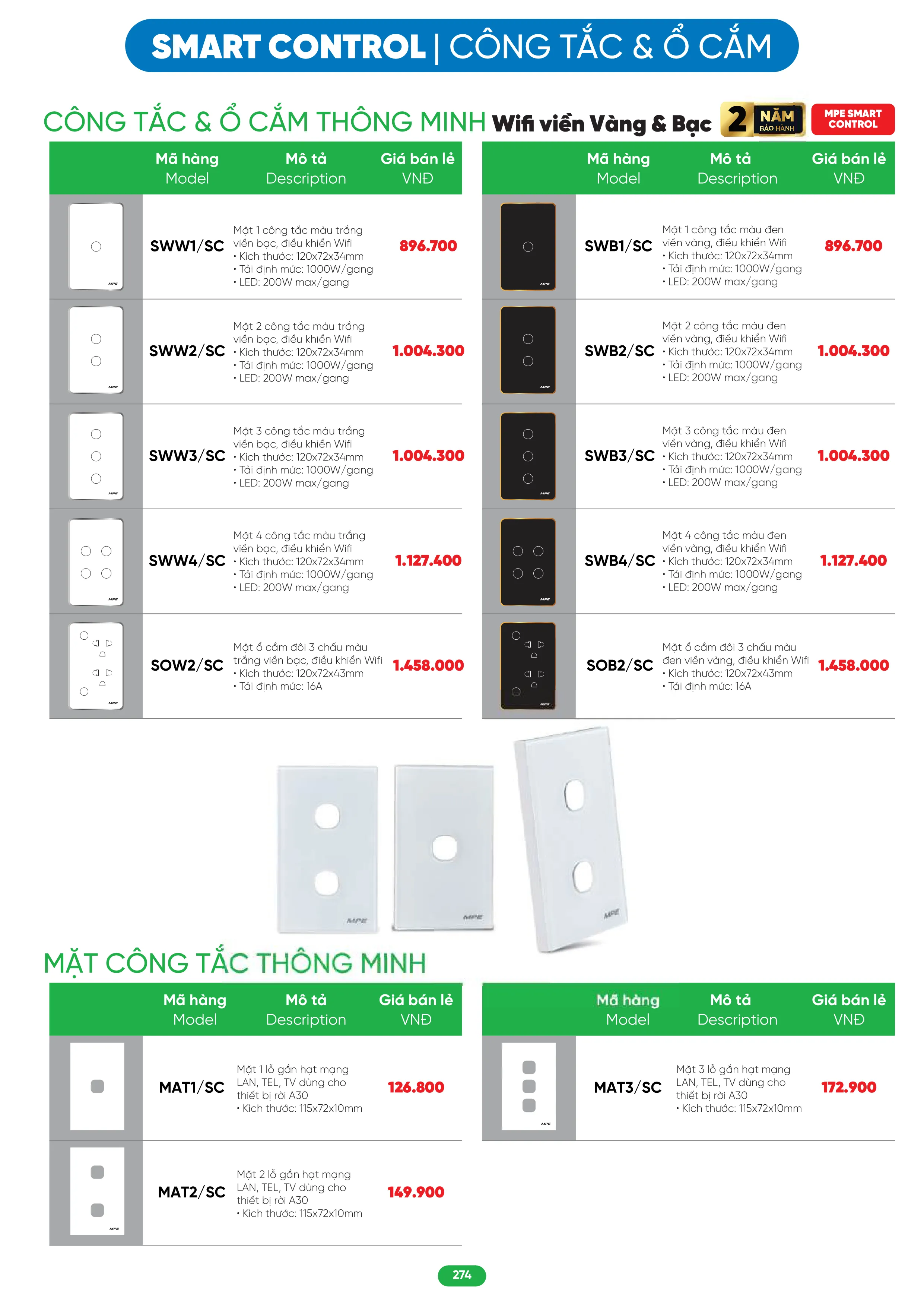 Mặt ổ cắm đôi 3 chấu màu trắng viền bạc MPE, điều khiển Wifi