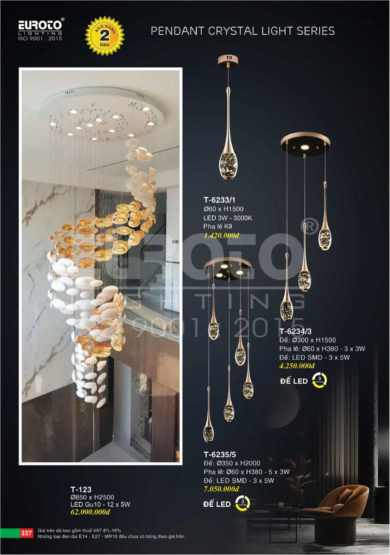 Đèn thả thông tầng Euroto T-123 Ø850 x H2500