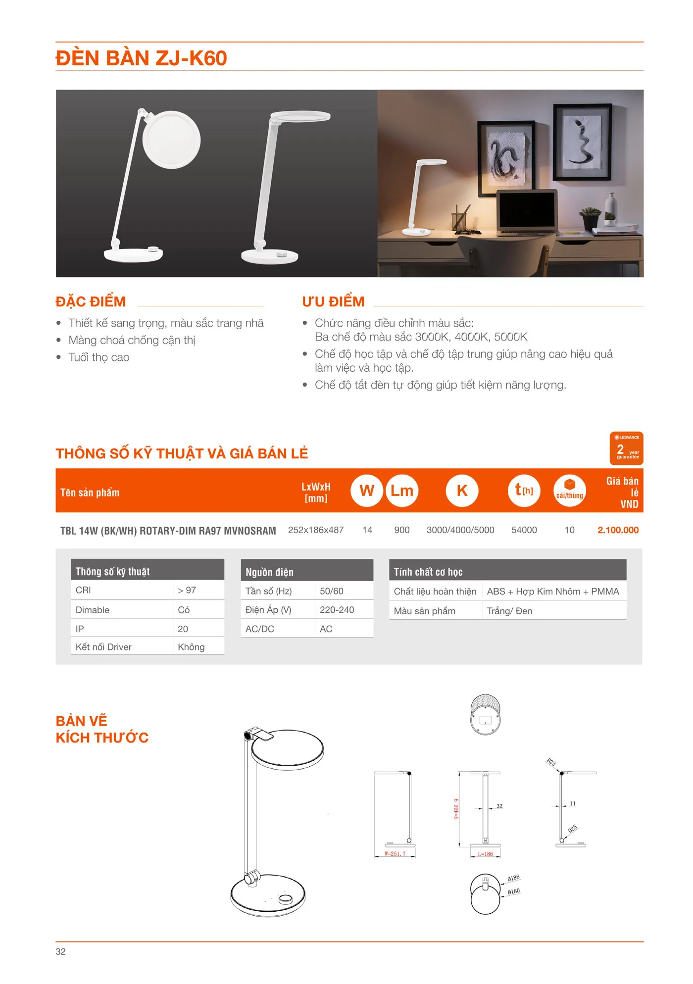 Đèn bàn ZJ-K60 Ledvance TBL 14W