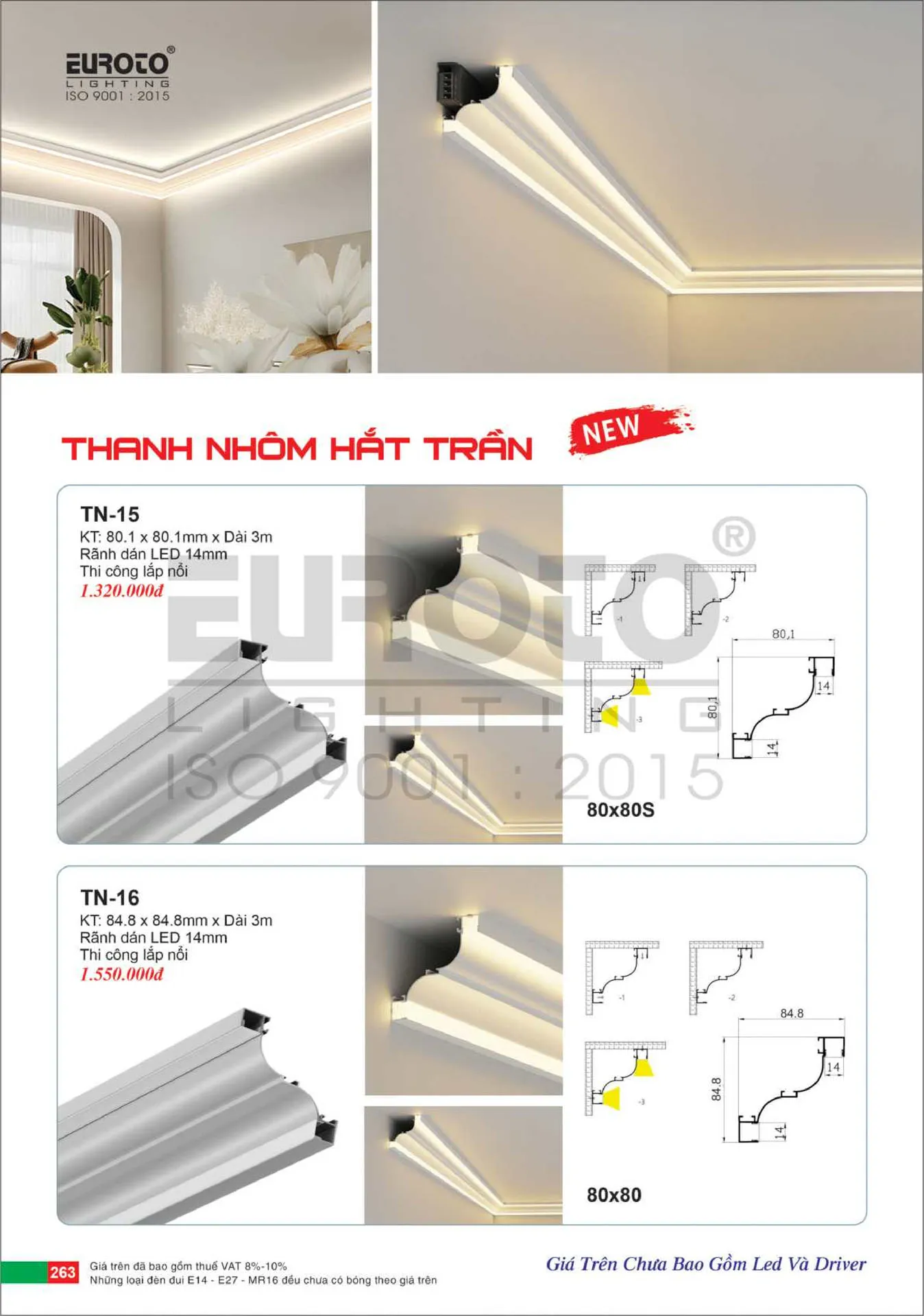 Thanh Nhôm Profile hắt trần Euroto TN-15 80.1*80.1mm 3m lắp nổi