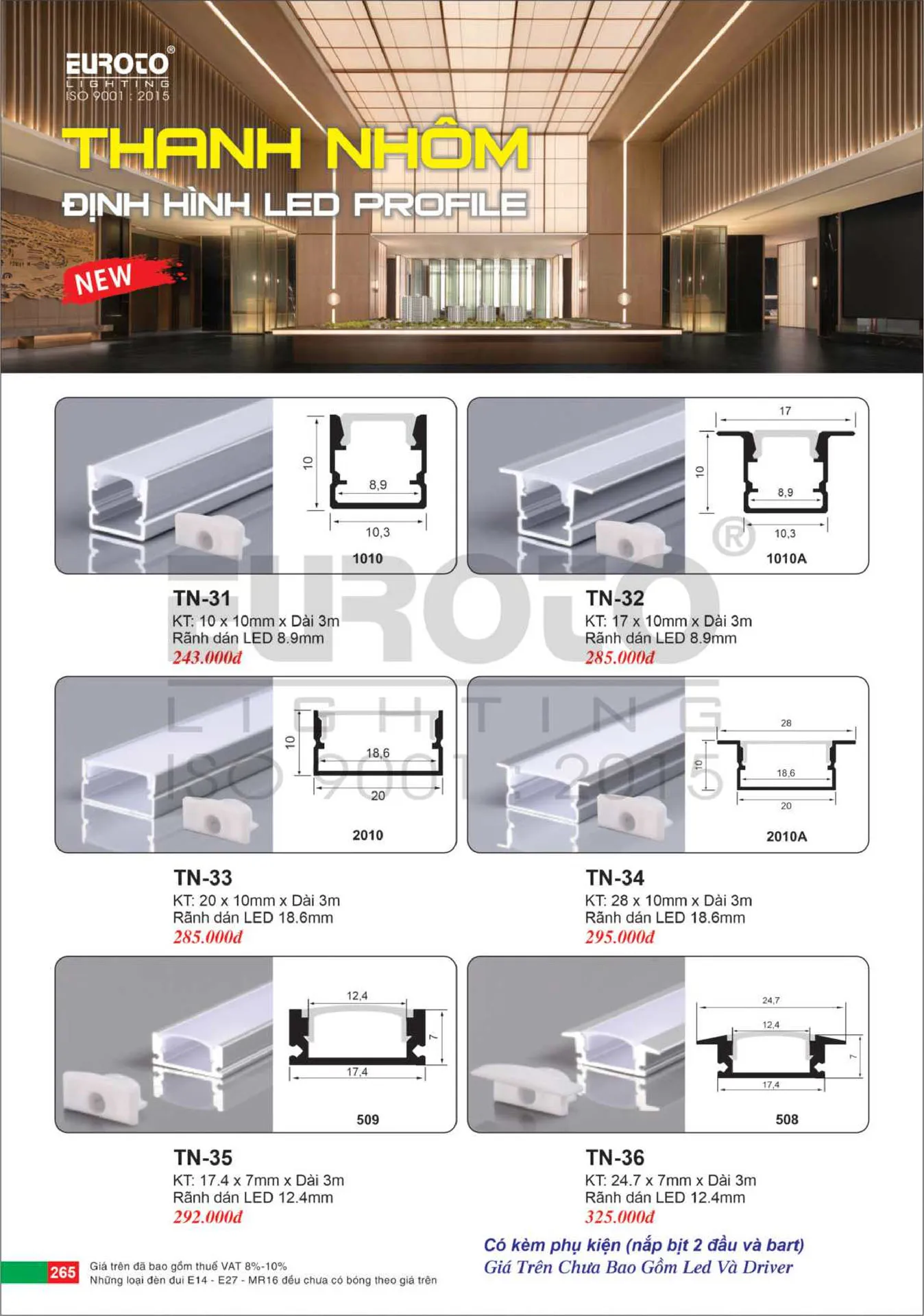 Thanh Nhôm Profile hắt trần Euroto TN-36 24.7*7mm 3m