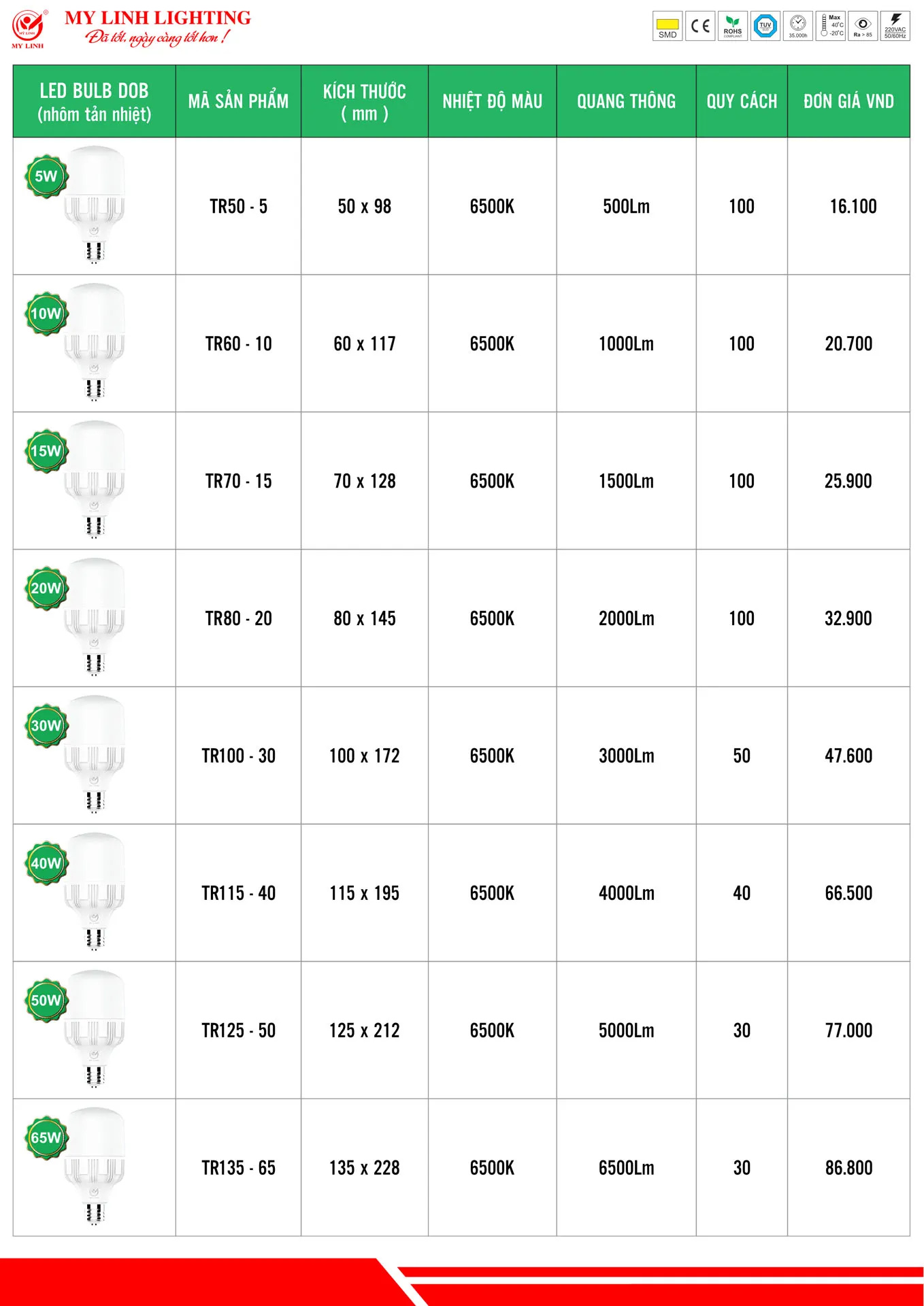 TR50-5 - Bóng đèn bulb trụ BOB 5W-65W