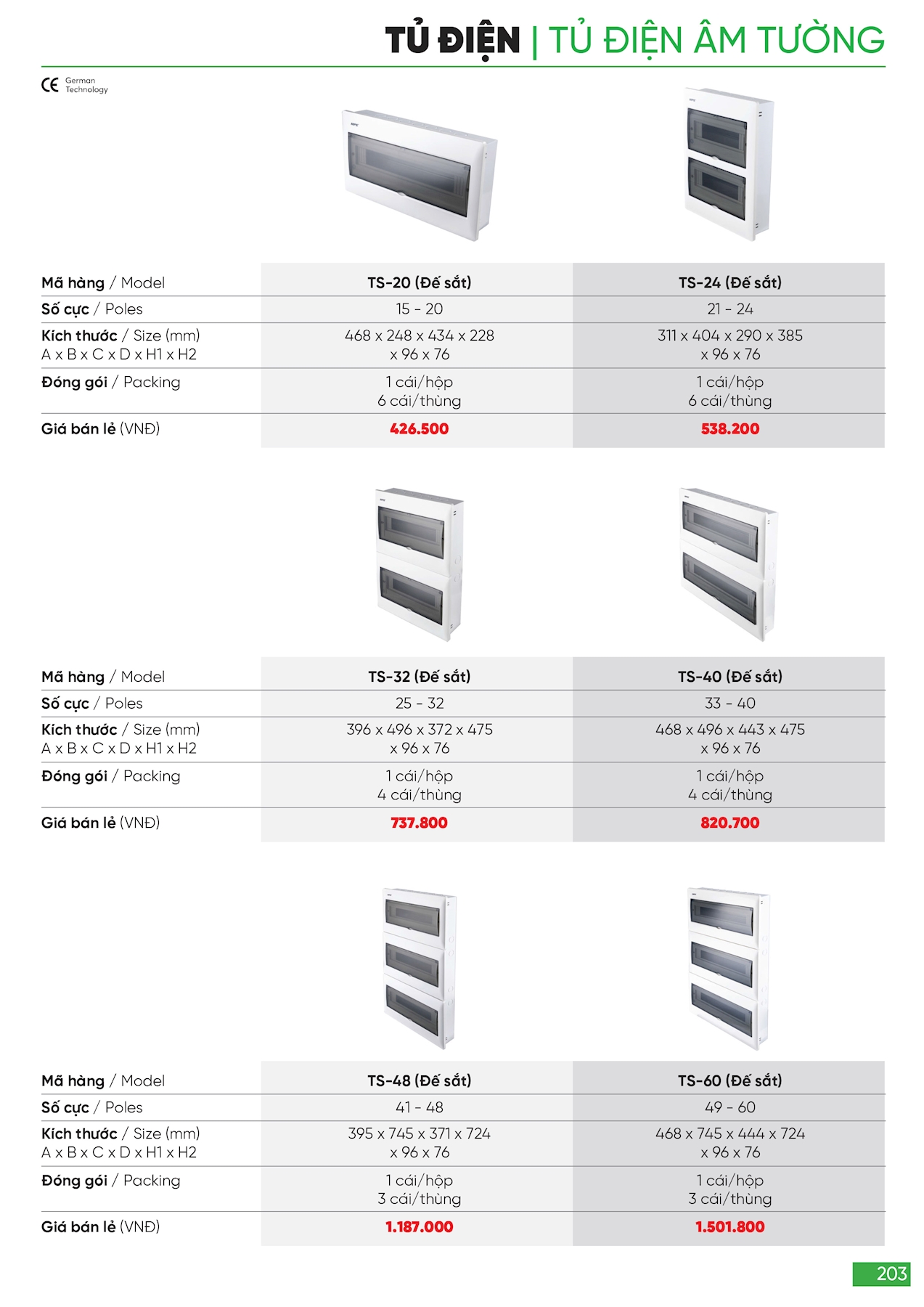 TS-4 - Tủ điện 2-60 Module MPE dòng TS đế sắt âm tường