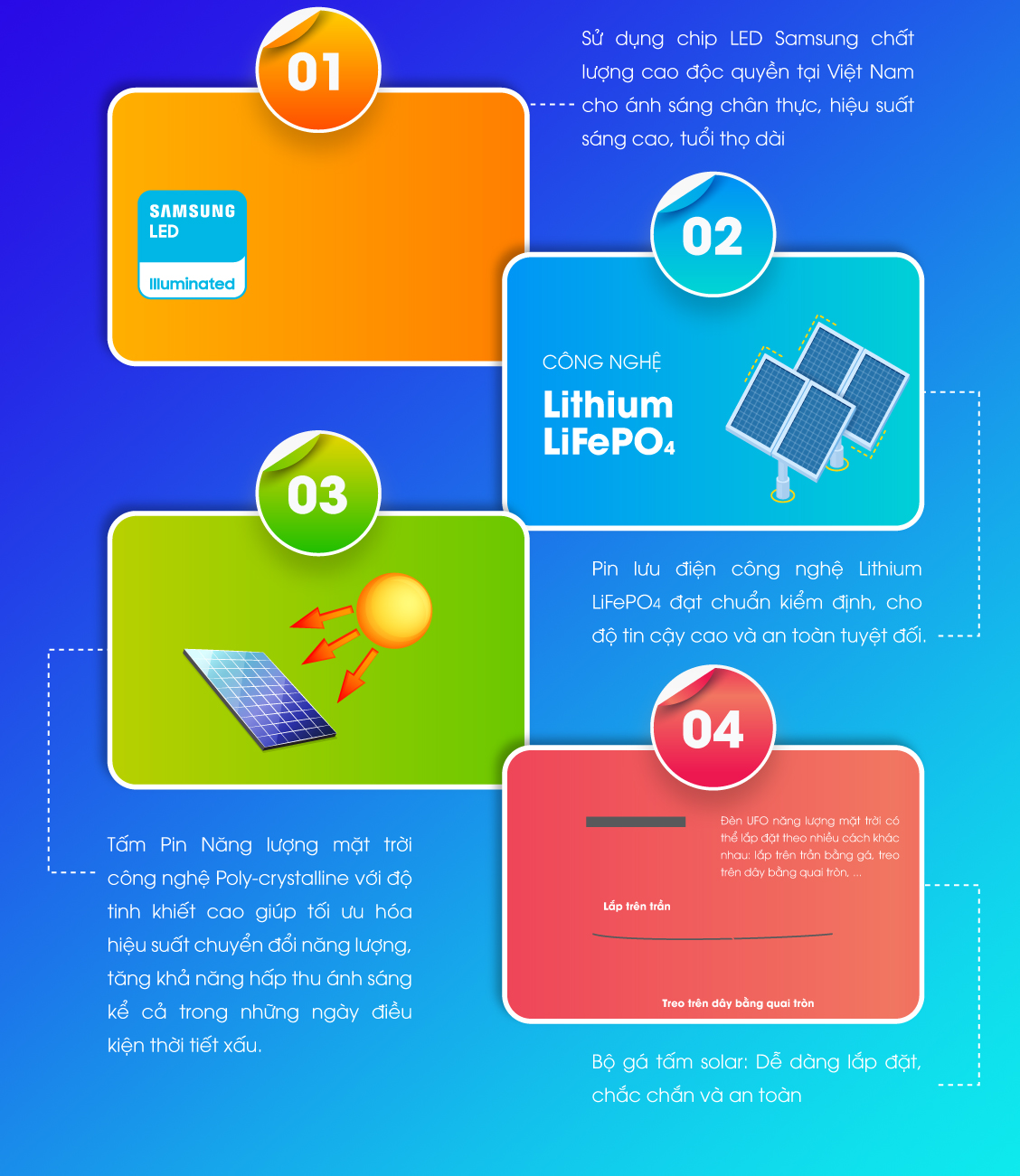 | Chế độ sáng | 5 chế độ sáng để lựa chọn: Auto, 3h, 5h, 8h, dimming |