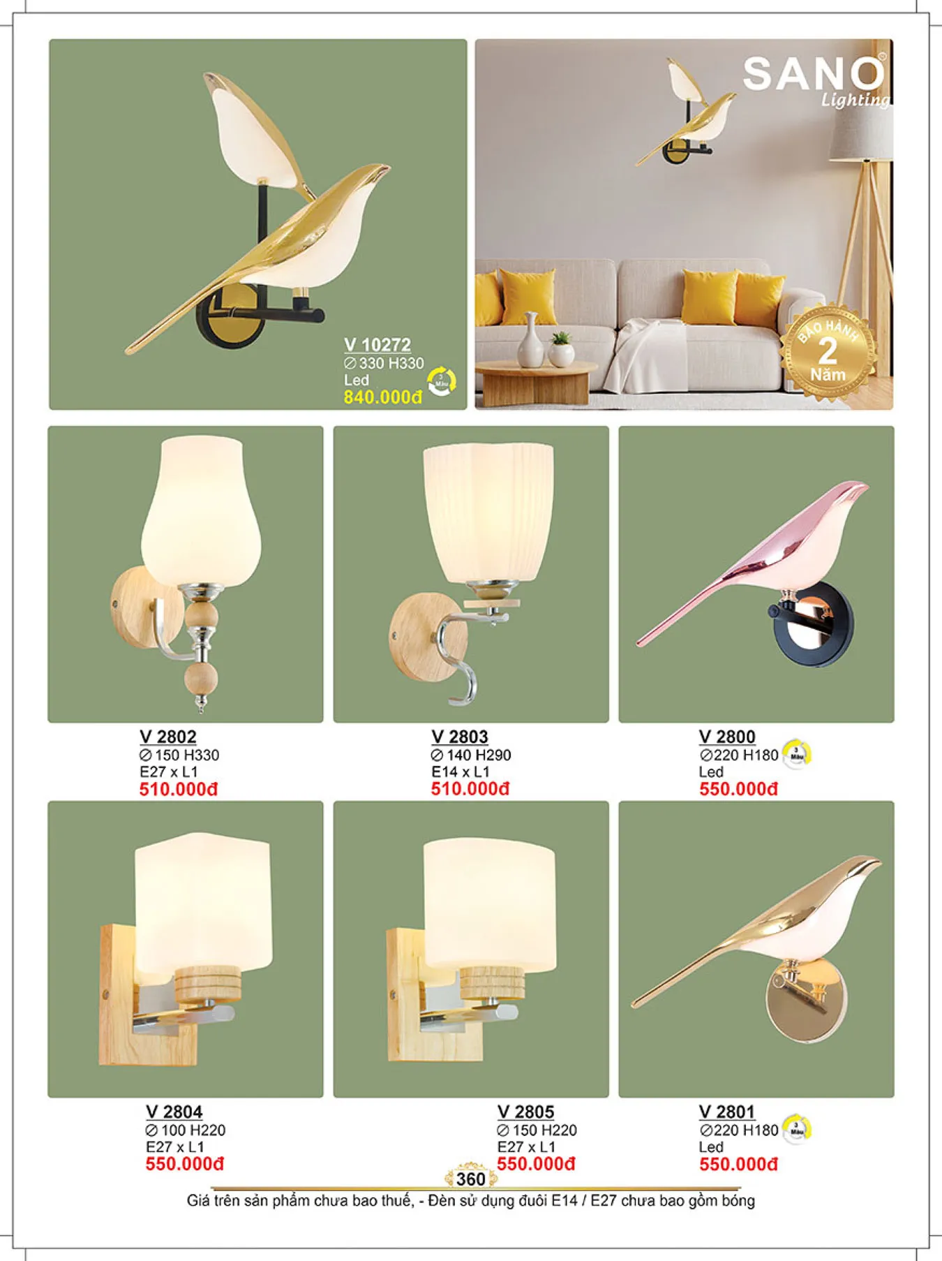 Đèn vách Sano V 10272 Ø330*H330 Led 3 màu