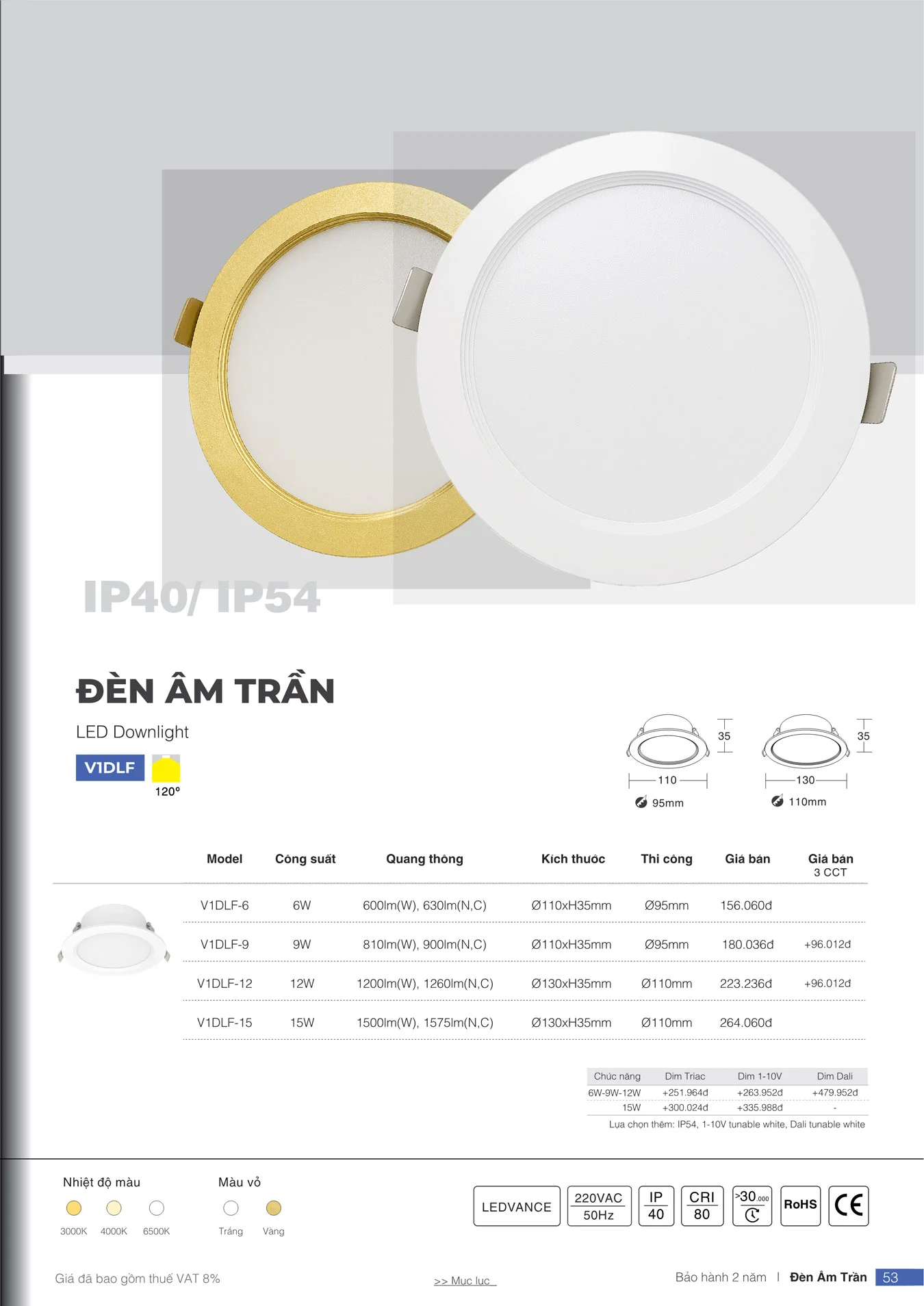 Ánh sáng trắng | V1DLF-9 | 180.036 | 30% | 126.026 |